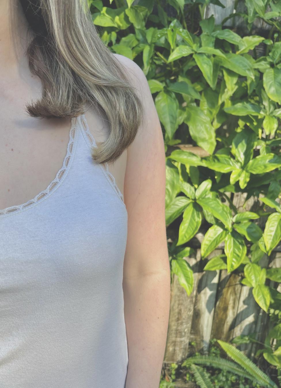 Lace is in every season, but especially in spring. Plain-colored lace-trimmed tank tops