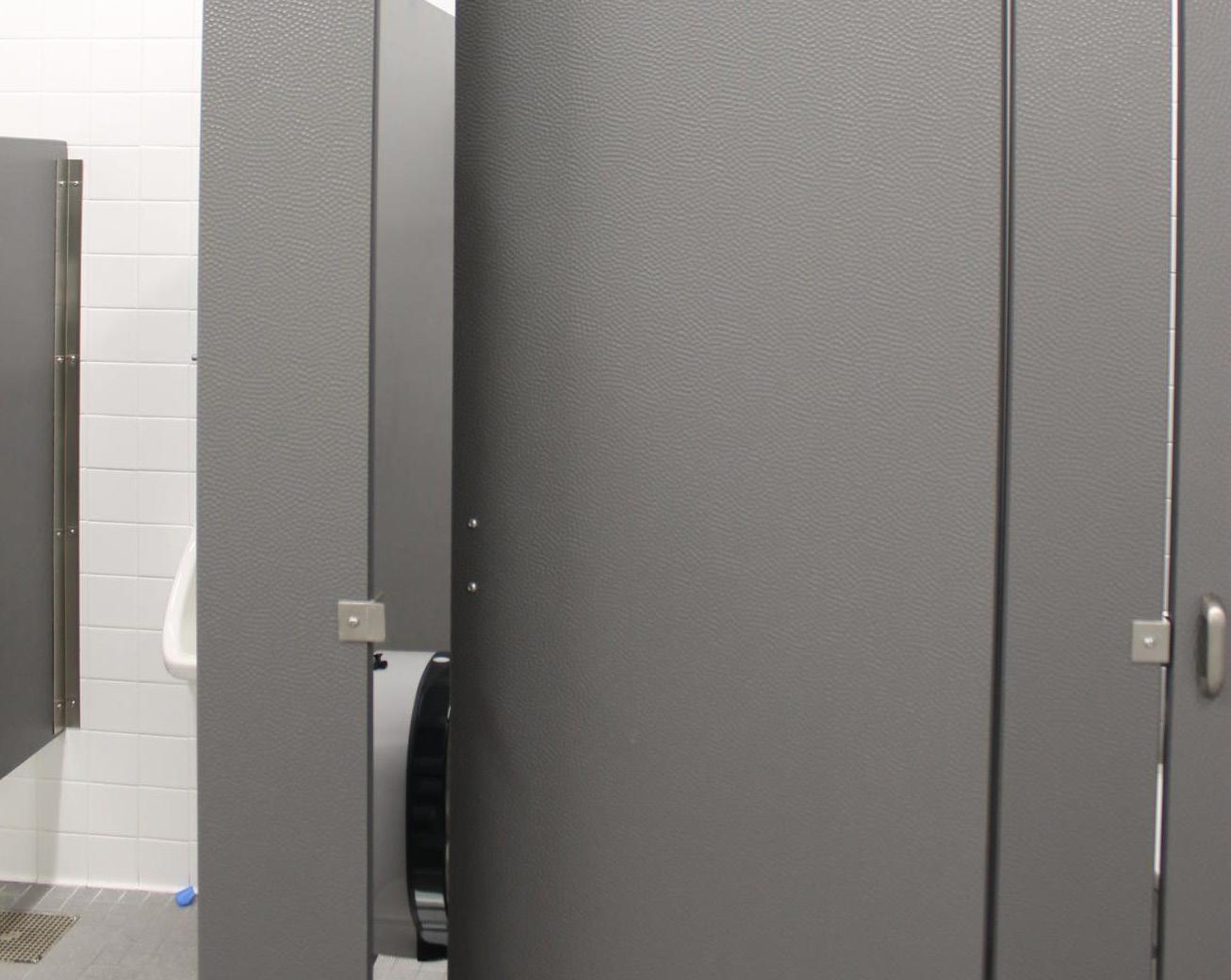 A new polymer stall door intended to curb graffiti. Photo by C. Cheng