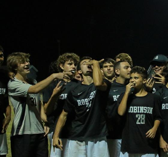 On Dec. 2, ahead of a home boys and girls’ basketball game against Alonso and an away boys and girls’ soccer game against Gaither, the Student Government Association (SGA) put together the Winter Sports Pep Rally in the Robinson Auditorium, which had its air condi tioning fixed just in time for the event. Robin son’s sports include basketball, soccer, wrestling, competitive cheerleading and winterguard. M.C. Oscar Poland (’23) also gave a shoutout to Avery Hawker (’24) for being an All-American swim