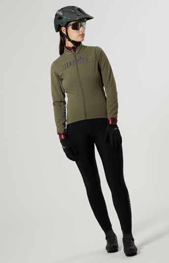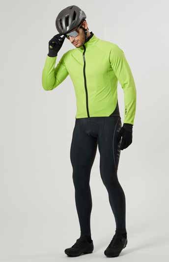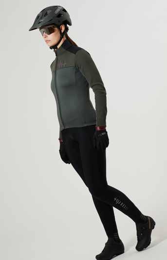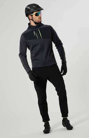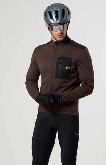 Brushed and soft fabric, warm and with high stretchability and compression features, with a Water Repellent treatment against rain and water splashes.