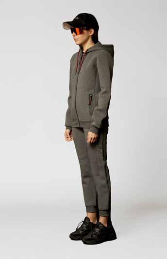 Tessuto garzato, morbido, caldo e con ottime doti di elasticità e compressione, con trattamento Water Repellent contro pioggia e schizzi di acqua.