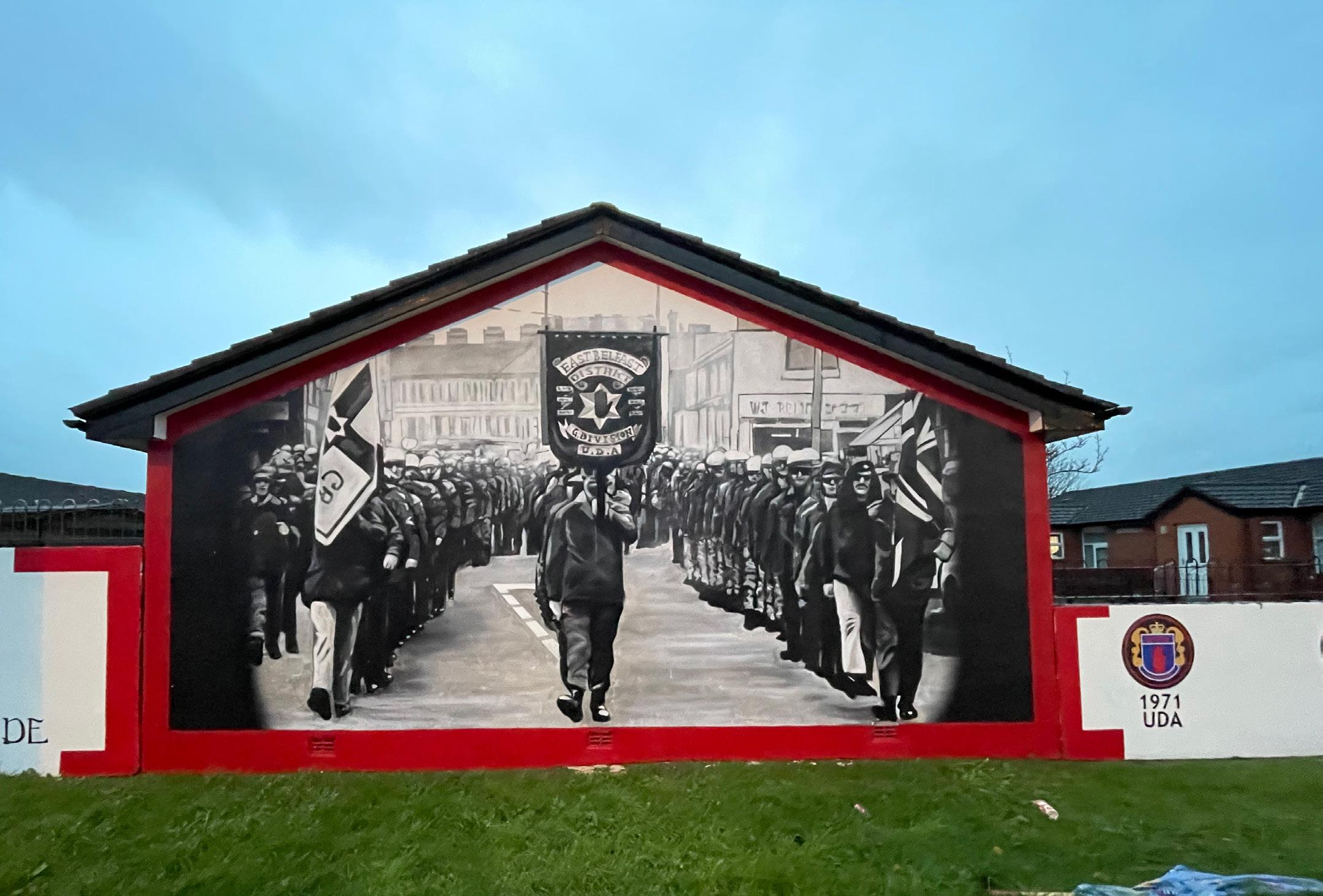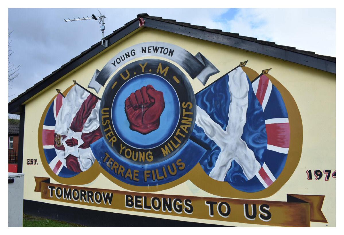 Following the signing of the Good Friday Agreement, measures were put in place to deescalate tensions between Protestant and Catholic communities and to attempt to reduce sectarianfuelled violence. Yet despite the Agreement being signed 25 years ago, the scars of the conflict are still prevalent today with sectarian division being perceived as being a major issue in Belfast with members of both communities still feeling unwelcome in certain areas, these subjective opinions are further exaggerated by outside influence like the Troubles tours that continue to highlight areas with clear community division, an industry where the use of signs and symbols is crucial in highlighting territories, these signs and symbols further solidify East Belfast being seen as Protestant and West being seen as Catholic.