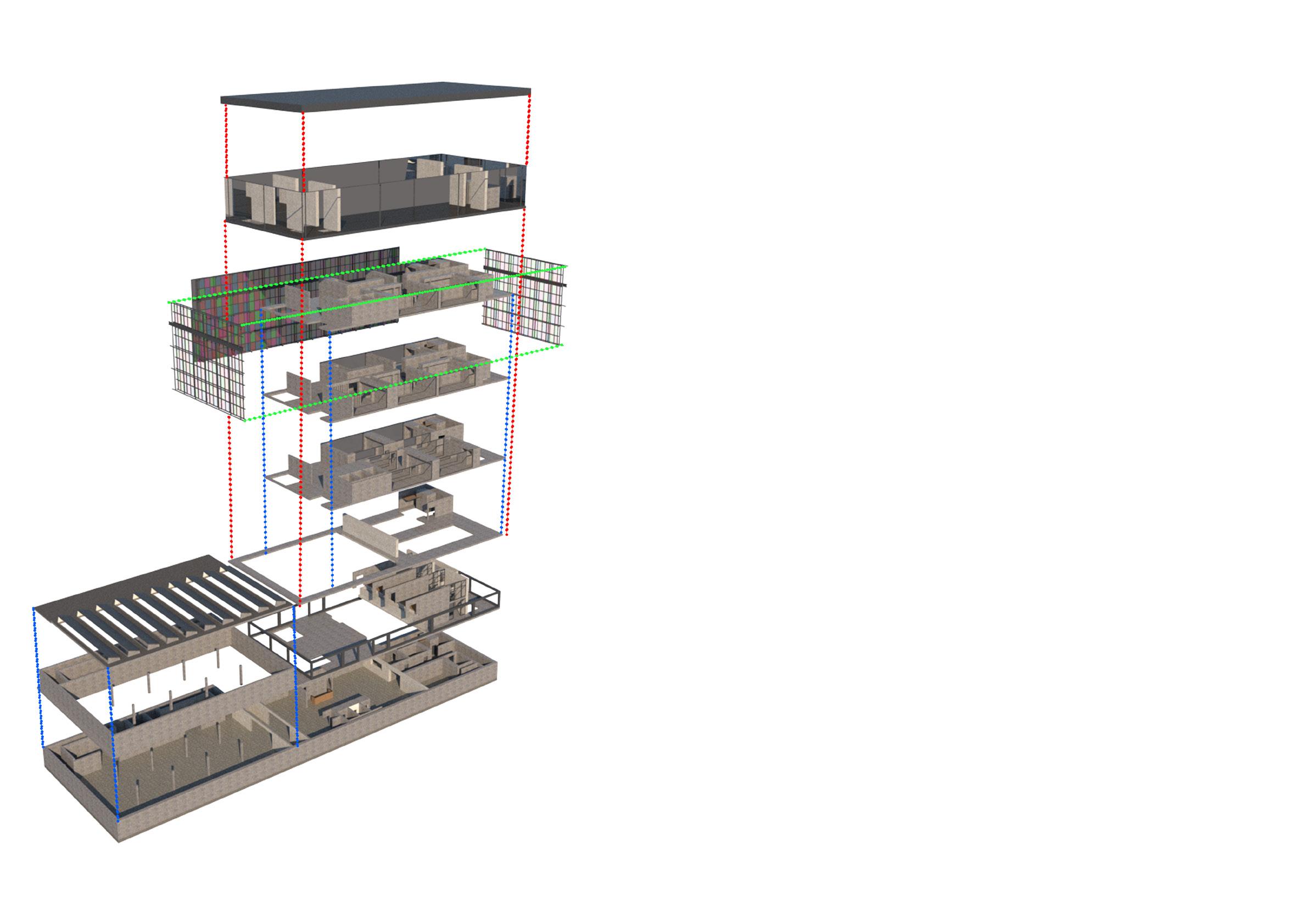 Celebrating the Belfast tradition of mural painting and street art, the proposed building is designed to appear as a “Seed of Inspirational Artwork”. By utilizing a bright a colourful polycarbonate façade system, the building not only serves as a place to create artwork but is instead an adaptive piece of artwork itself, this façade system has been designed to ensure the proposed building can benefit from as much natural light as possible. The colourful envelope of the building has been designed to contrast with the deliberately plain interior, The choice to preserve the existing concrete structure and continue it into the proposed additions allows the internal spaces of the building to be given their own character as they can be used as canvases by the artists in residense. The carefully selected site will hopefully allow the progressive artwork created within the proposed building to spread into the greater East Belfast area allowing it to become a more welcoming environment for all.