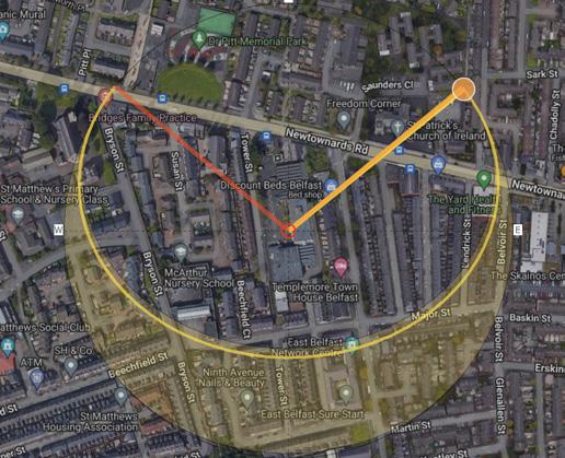Whilst surveying the Upper Newtownards Road I produced a map focusing on every sign and mural present, through these observations I decided to move my site from the Albertbridge Road to the Old Belfast Met building located on Tower street, (marked in red) I believe that by doing so the nature of my building will be able to address its surrounding context better