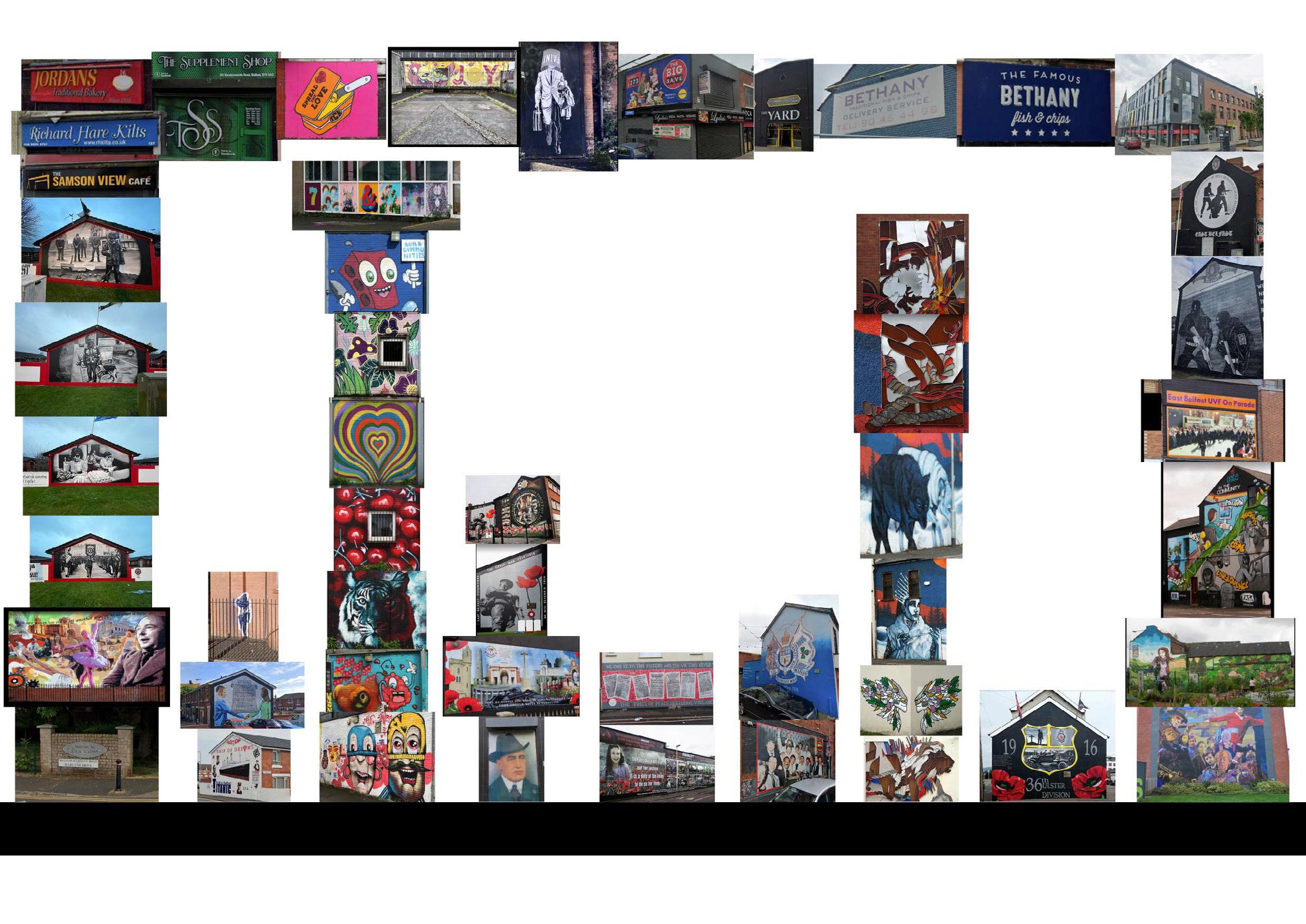 Taking into consideration the previous points raised it is evident that murals play a huge role in the heritage of Belfast, furthermore it is clear that a conscious effort to rebrand artwork is being made, examples of which can be seen as follows.