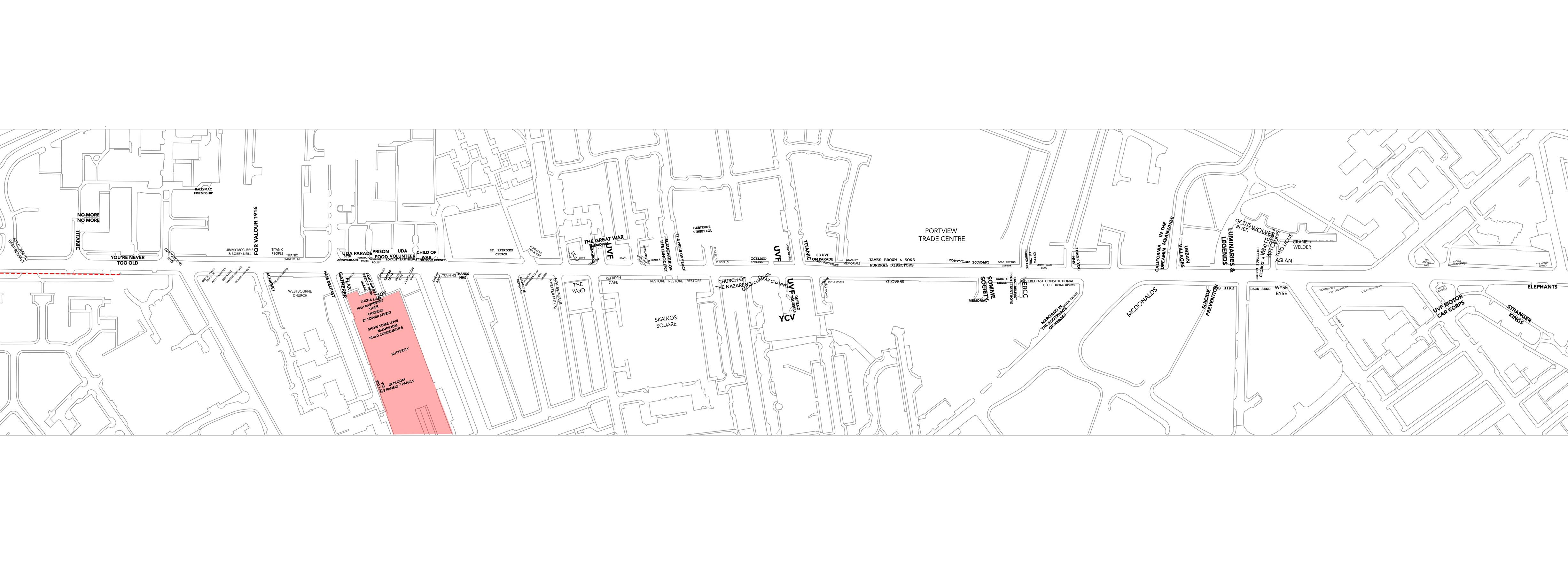 Despite there being no shortage of sectarian imagery around Belfast the Newtownards Road in East Belfast is of particular interest as it has a high density of signs and symbols within a small stretch of road which results in a barrage of loyalist propaganda as you pass through the space. To understand why these locations are perceived in these ways I have decided to look at the Newtownards Road in depth for this thesis project. In particular,the ways in which loyalist propaganda has been removed in order to positively impact an individual’s perception of the space, with the aim of understanding if opting to encourage diverse and inclusive imagery can benefit Belfast