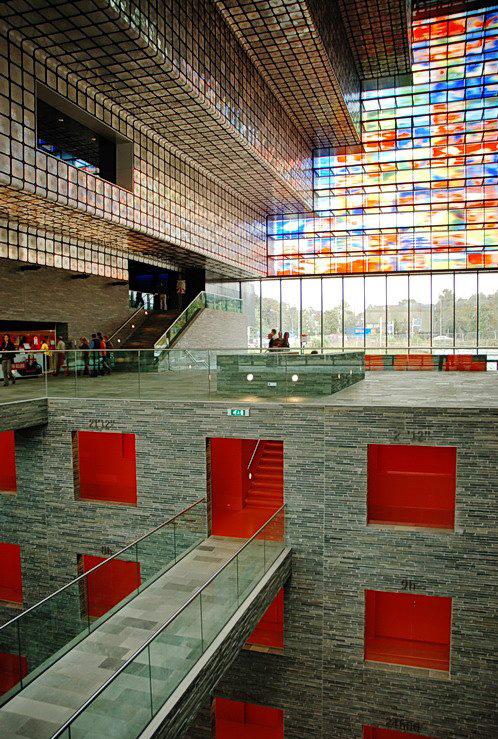 Despite Mies van der rohe’s iconic saying of “less is more” I find it important that my building is a celebration of art in itself, As a result I have drawn further inspiration from the Netherlands Institute For Sound and Vision, its uniquely coloured façade allows for light to tempered and dispersed to the lower sublevels which have been deliberately orientated south to benefit from the afternoon sun.