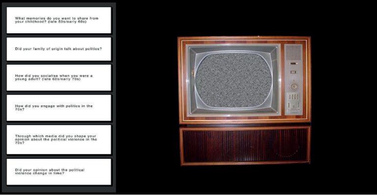 Initially the centre of social gatherings, televisions became the main source of any memory about the right-wing bombing attacks, and as a result I decided to visually highlight their relevance, yet at the same time create a sense of subversion. Moving the participants to the foreground (each framed by an old