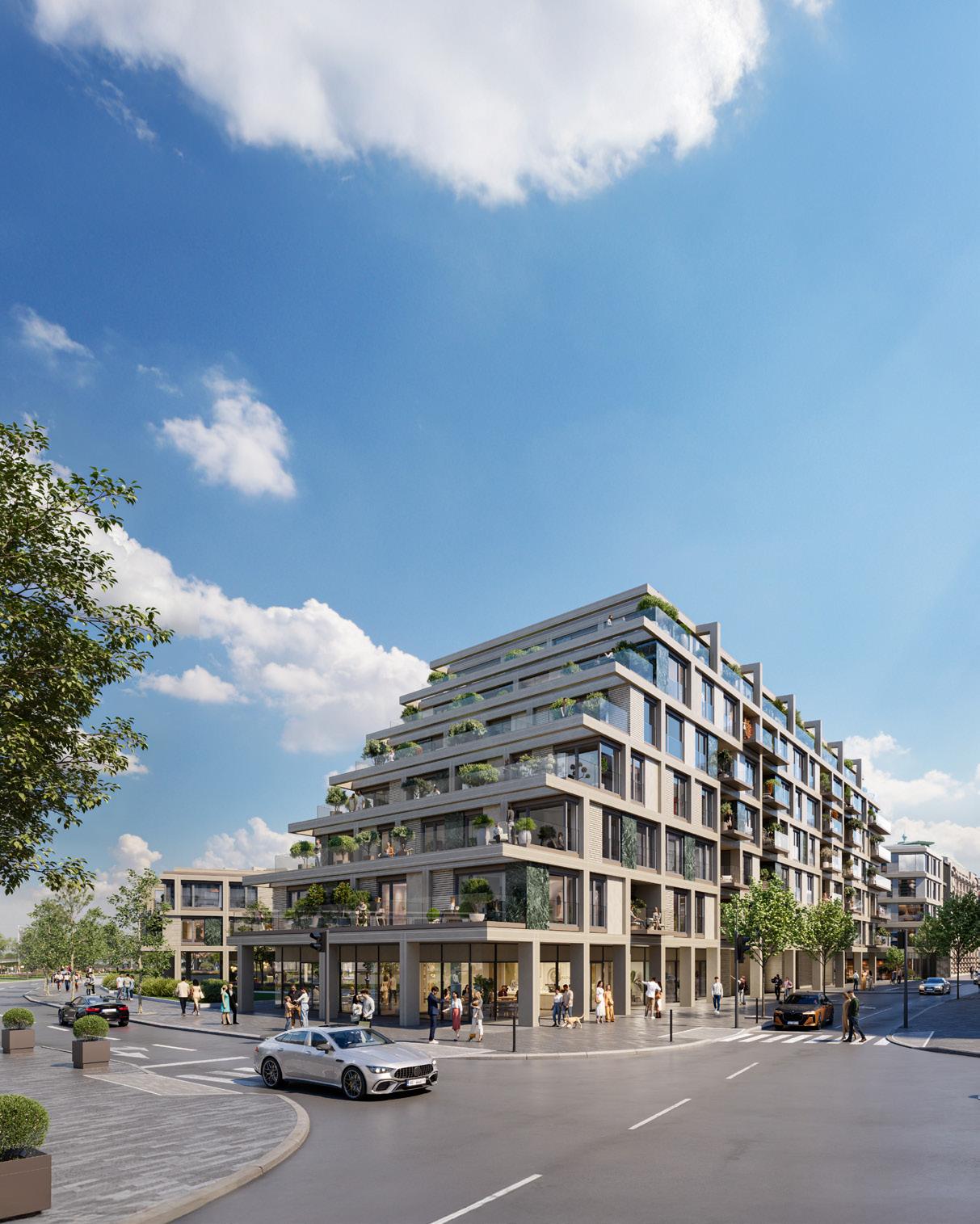 The underground car park spans two levels with 136 spaces, some of which can be fitted with electric car chargers. Additional storage rooms for apartments larger than 100 m² ensure convenience and practicality.