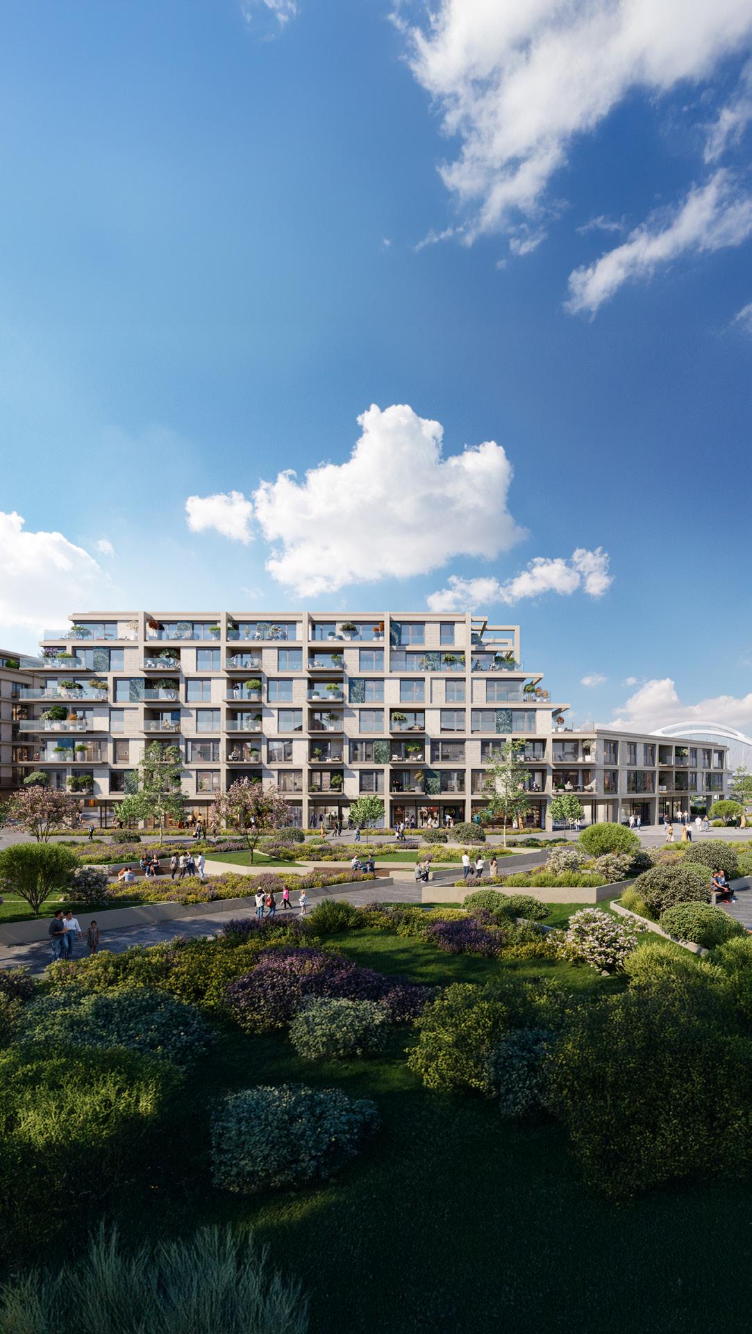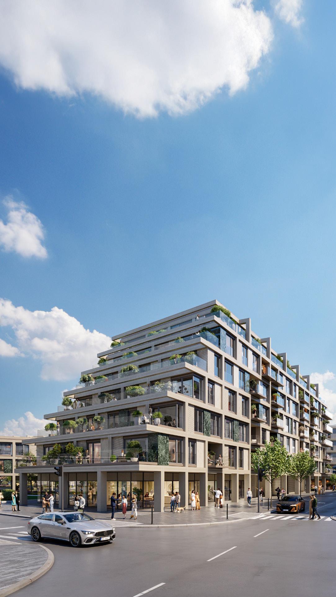 The underground car park spans two levels with 136 spaces, some of which can be fitted with electric car chargers. Additional storage rooms for apartments larger than 100 m² ensure convenience and practicality.