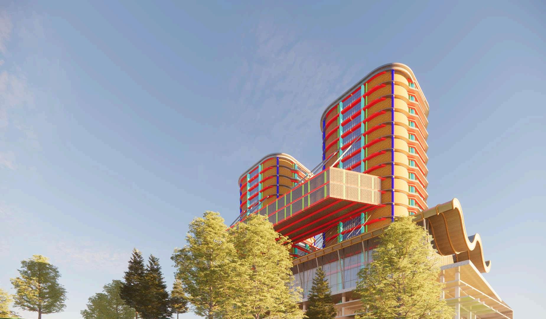 Ide bentuk pada bangunan Resort & villa terinspirasi dari bangunan bess surabaya 1 struktur yang saya gunakan menggunakan beton dan baja