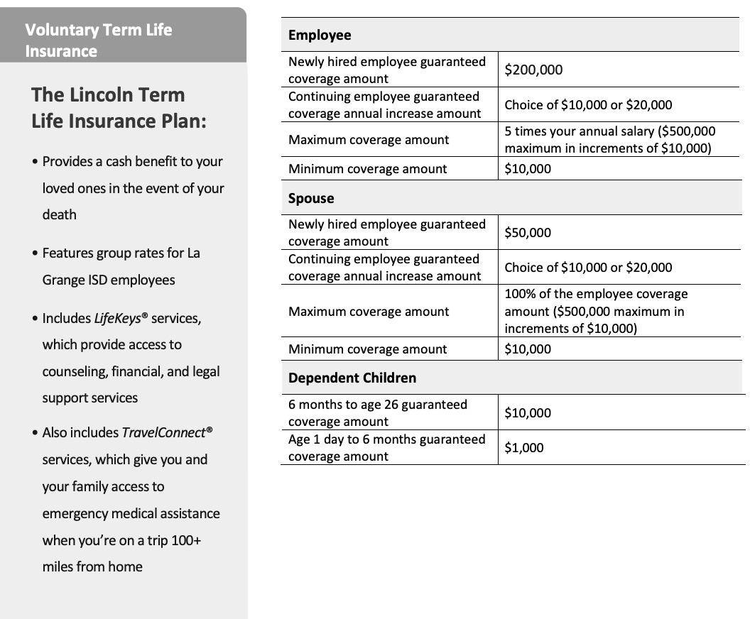 La Grange ISD offers eligible employees a competitive benefits package that includes both district paid and voluntary products. We have worked closely with US Employee Benefits Services Group (USEBSG) to provide you with a variety of benefits and resources to help you reach your healthcare and retirement needs. Details of all available benefits can be found on the Employee Benefit Portal.