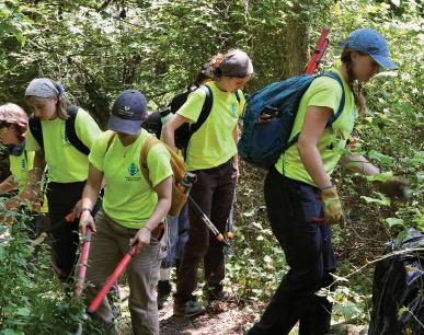 Cohorts of high school and college students have been stepping into stewardship roles through the Youth Conservation League (YCL) for more than 10 years, a program managed by Audubon. Traveling to Audubon wildlife refuges, as well as other parks and conservancies, these young conservationists learn from experts and get their hands dirty on a range of projects. The mission of this paid summer program is dualpronged, giving young people meaningful summer employment and the practical skills and connections needed to explore their future career prospects in a competitive field, while also completing important conservation-oriented tasks that improve these spaces for visitors and wild inhabitants alike.