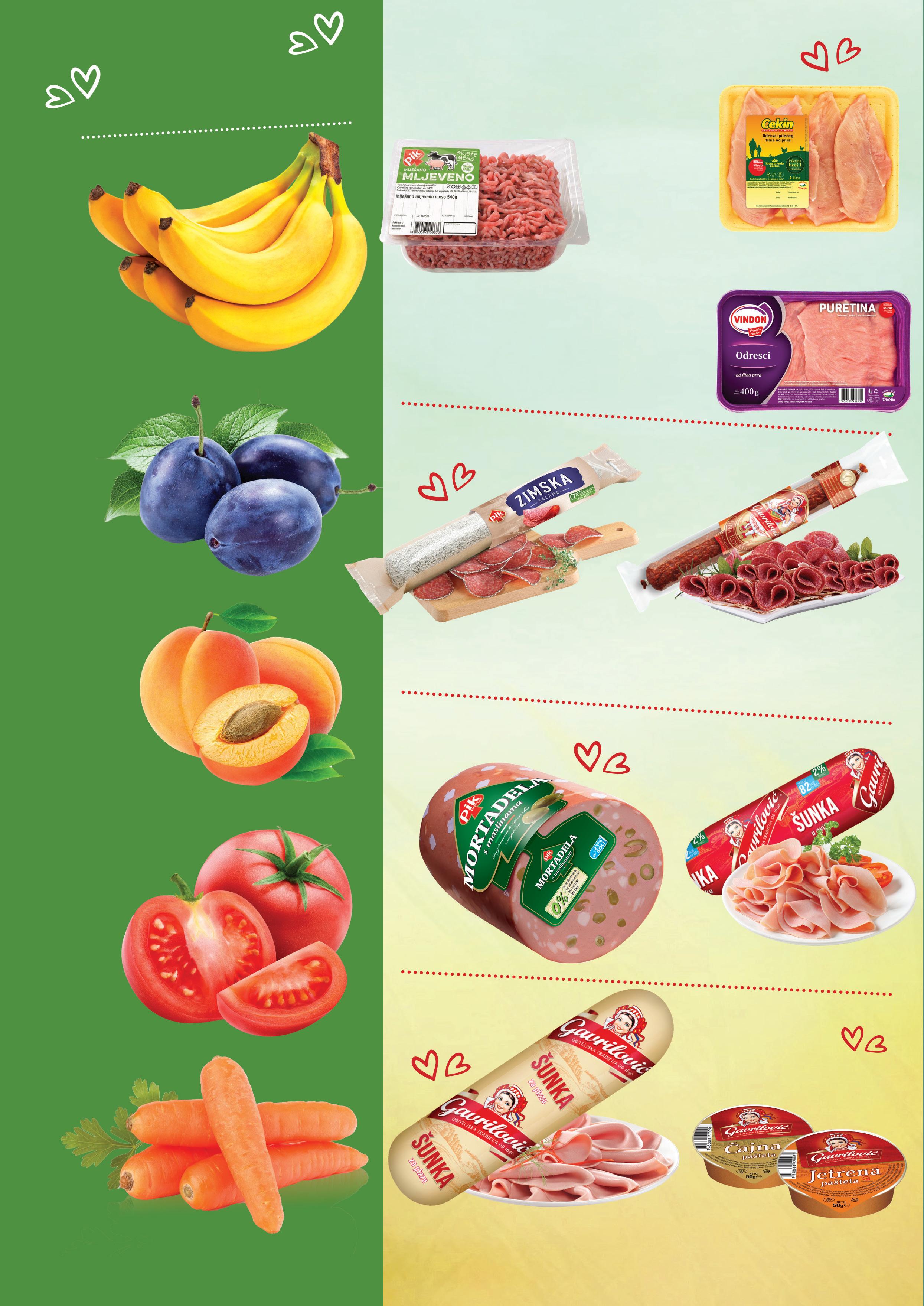 2 domaći proizvod domaći proizvod 195 14 69 €/kg kn/kg 139 10 47 €/kg kn/kg 089 6 71 €/kg kn/kg 129 9 92 €/kg kn/kg 089 6 71 €/kg kn/kg PIK Miješano mljeveno meso 540 g 1 kg = 6,95 € / 52,36 kn Banana* Šljiva Marelica Rajčica Mrkva CEKIN Odresci pilećeg filea 400 g 1 kg = 12,28 € / 92,52 kn VINDON Pureći odresci od filea 400 g 1 kg = 12,28 € / 92,52 kn GAVRILOVIĆ Šunka u ovitku 350 g 1 kg = 9,11 € / 68,64 kn GAVRILOVIĆ Pašteta • Čajna • Jetrena 50 g 1 kg = 15,00 € / 113,02 kn PIK Mortadela S maslinama *Akcija vrijedi: 10.08.-13.08.2023. PIK Zimska salama GAVRILOVIĆ Šunka za pizzu 1499 €/kg 112 94 kn/kg 8 49 63 97 €/kg kn/kg 4 29 32 32 €/kg kn/kg 319 € 2404 kn 491 € 3699 kn 491 € 3699 kn 375 € 28 25 kn 0 75 € 565 kn GAVRILOVIĆ Čajna kobasica Premium 1333 €/kg 100 43 kn/kg
