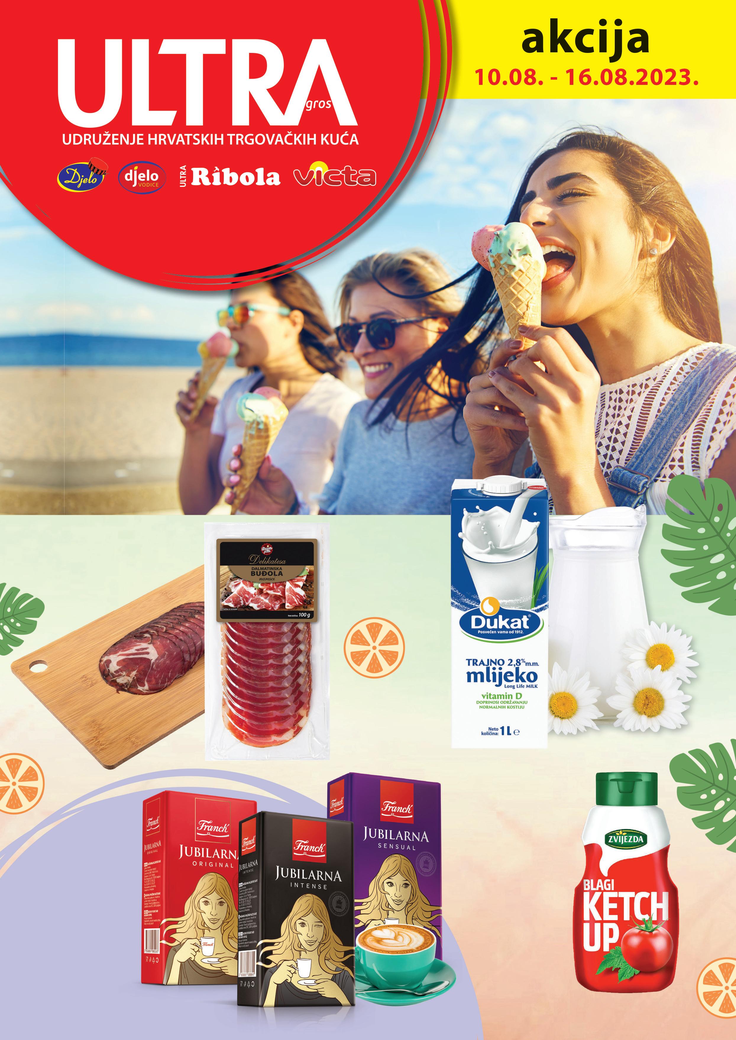 maloprodajne (uračunat PDV). Akcije iz kataloga vrijede isključivo u prodavaonicama Ultre u periodu od 10.08. - 16.08.2023. *Cijene iskazane na polici su umanjene za navedeni postotak. Zbog ograničenosti prostora, sve akcije možda nisu dostupne u svim prodavaonicama ULTRE označenim naljepnicom. Fotografije artikala ne moraju odgovarati stvarnom izgledu proizvoda. Ne odgovaramo za tiskarske pogreške. Prema odluci Vijeća Europske
