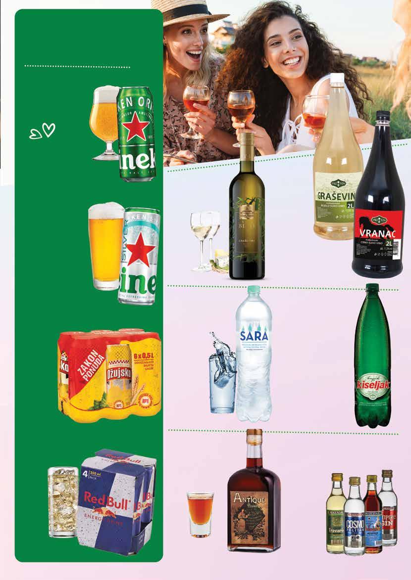 veliki izbor piva! 13 SARA Prirodna mineralna voda 1,5 l 1 l = 0,35 € / 2,64 kn SARAJEVSKI KISELJAK Gazirana prirodna mineralna voda 1,5 l 1 l = 0,44 € / 3,32 kn RED BULL Energetski napitak 4 x 0,25 l 1 l HEINEKEN Pivo Limenka 0,5 l 1 l = 2,76 € / 20,80 kn OŽUJSKO Pivo Limenka 6 x 0,5 l 1 l = 2,03 € / 15,30 kn VINA BELJE Graševina Kvalitetno bijelo vino 0,75 l 1 l = 5,31 € / 40,01 kn MARASKA Jako alkoholno piće • Odabrane vrste 0,1 l 1 l = 12,90 € / 97,20 kn ANTIQUE Pelinkovac Biljni liker 0,7 l 1 l = 20,84 € / 157,02 kn EPSKO VINO Graševina Bijelo suho vino ili Vranac Crno suho vino PET 2 l 1 l = 1,73 € / 13,03 kn 0 53 € 399 kn 0 66 € 497 kn 129 € 9 72 kn 459 € 3458 kn 138 € 10 40 kn 3 45 € 2599 kn 3 98 € 2999 kn 610 € 4596 kn 1459 € 10993 kn HEINEKEN Pivo Silver Limenka 0,5 l 1 l = 2,98 € / 22,45 kn 149 € 1123 kn Za žeđ tu mineralnaje voda!
