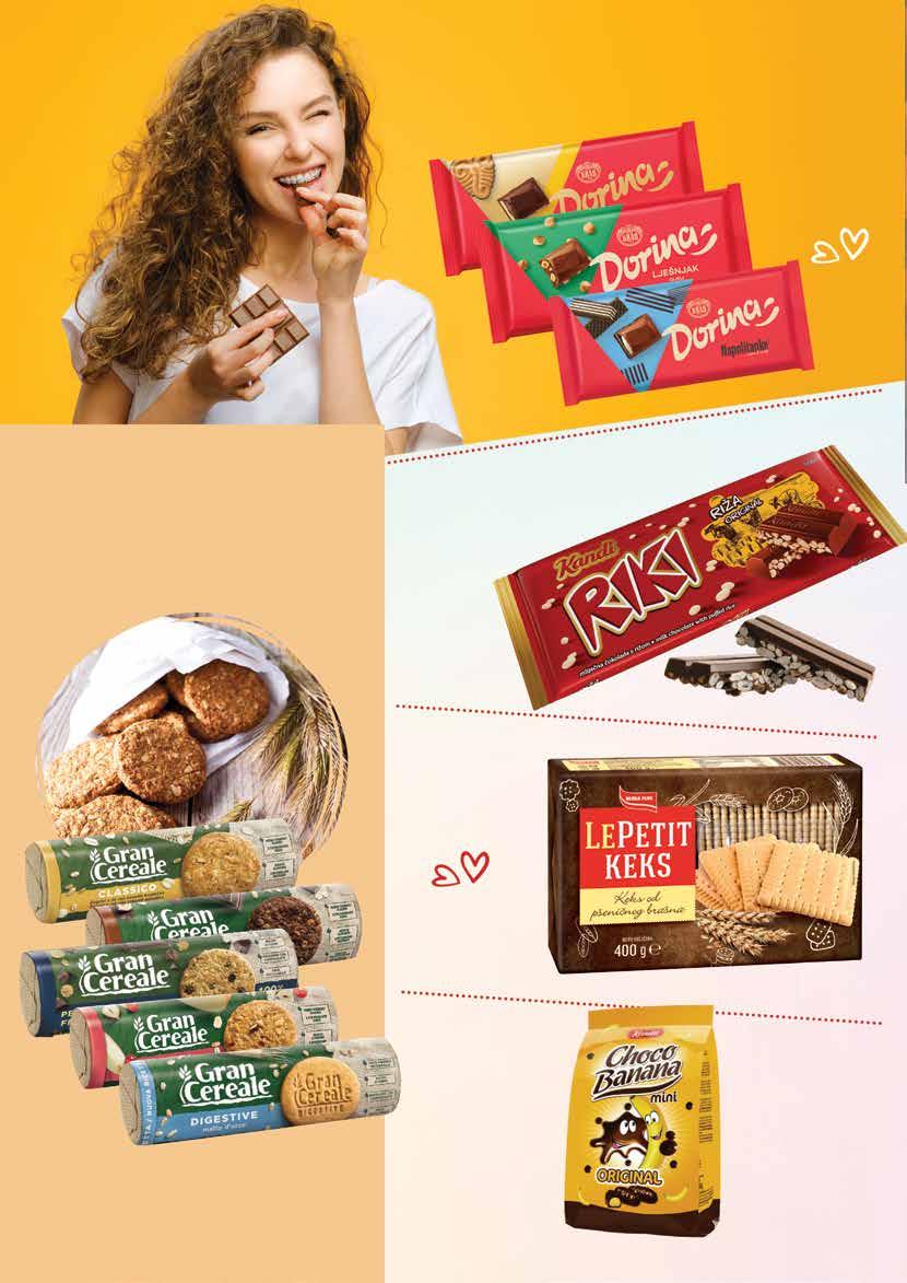 ukusni keksići 10 Počasti najboljimse čokoladama! DORINA Čokolada • Odabrane vrste 100 g - 105 g 1 kg = 8,86 € - 9,30 € / 66,76 kn - 70,07 kn ULTRA PLUS Le Petit keks Keks od pšeničnog brašna 400 g 1 kg = 2,65 € / 19,97 kn KANDI Riki Mliječna čokolada s rižom 200 g 1 kg = 8,60 € / 64,80 kn KANDIT Choco Banana Mini Original 120 g 1 kg = 7,17 € / 54,02 kn 0 93 € 7 01 kn 0 86 € 648 kn 106 € 799 kn 172 € 1296 kn -20% popusta na odabrani GRANCEREALE asortiman * * Cijene iskazane na policama umanjene su za navedeni postotak. Ukusne mini Choco Bananice!
