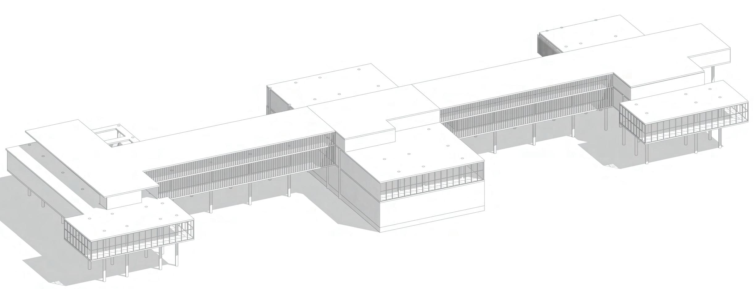 The form begins to recognize the views of the wetland, creating a strong visual contact that allows the building to rise and create visibility