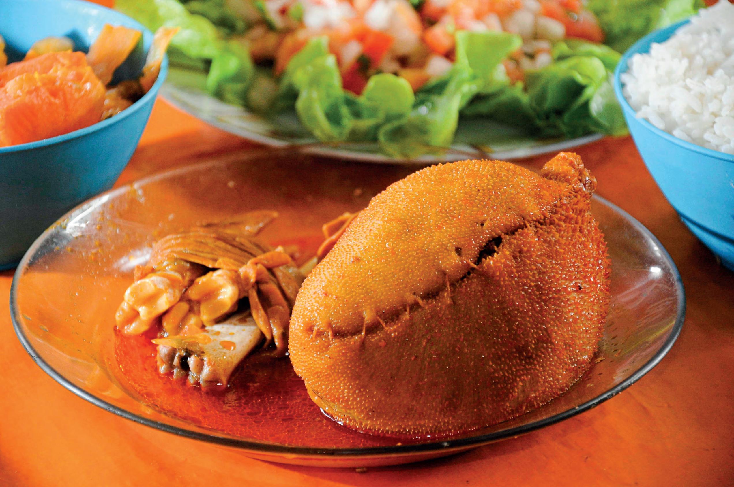 Bien lo sabe la chef Jessica da França, a quien conozco días después en los cuarteles del Caldinho do Nenen. Un restaurante ubicado en la costanera céntrica de Porto de Galin has, donde buscan aprove char los productos que llegan cuando sube la marea. Su especialidad es el barco do porto, una montaña de pescados, cangrejos, gambas y calama res. Antes de atacarlo me