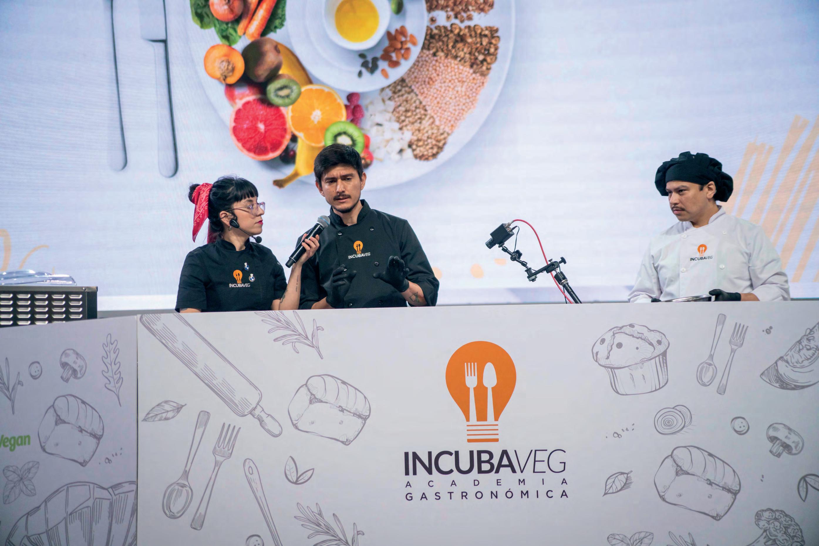 acompañados por Alejandra Toloza, Directora académica de Incubaveg. Carolina Rojas chef dueña de la pastelería de vanguardia Nora Elemental creó la versión de unos de sus postres tradicionales llamado “Raquel”, quedando con la textura y sabor idéntico al original. Por su parte el chef Sebastián Lobos de Tres Almendros, deleitó al público con helado y chocolate de frutas sin leche; y por último el chef y empresario Nicolás Cañete creador de Tasty Free, preparó unas ricas y rápidas churrascas veganas y sin gluten Alejandra Toloza, comenta que