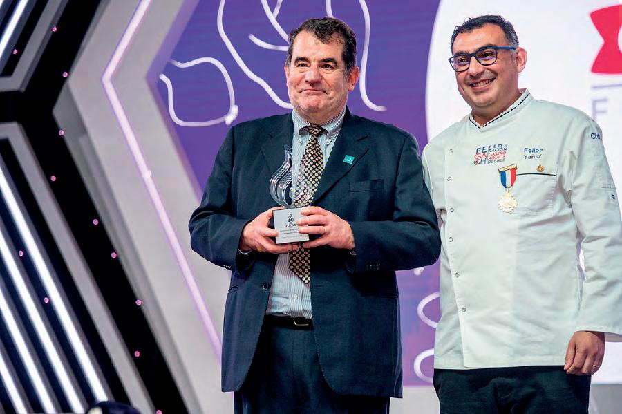 Posteriormente los chefs entregaron un reconocimiento especial con mucho agradecimiento al artífice de Food Service, una de las Ferias más grandes de Latinoamérica, a Andrés Ilabaca, Director Comercial de Espacio Food Service por su trabajo y por su apoyo de siempre a toda la industria gastronómica nacional, de la mano de Patricio Qüense, Presidente de Les Toques Blanches, quien señaló que: “Después de años de pandemia, en que nuestra industria fue una de las más golpeadas, nos volvimos a levantar y agradecía poder volver a juntarnos en torno a la Cocina”, con