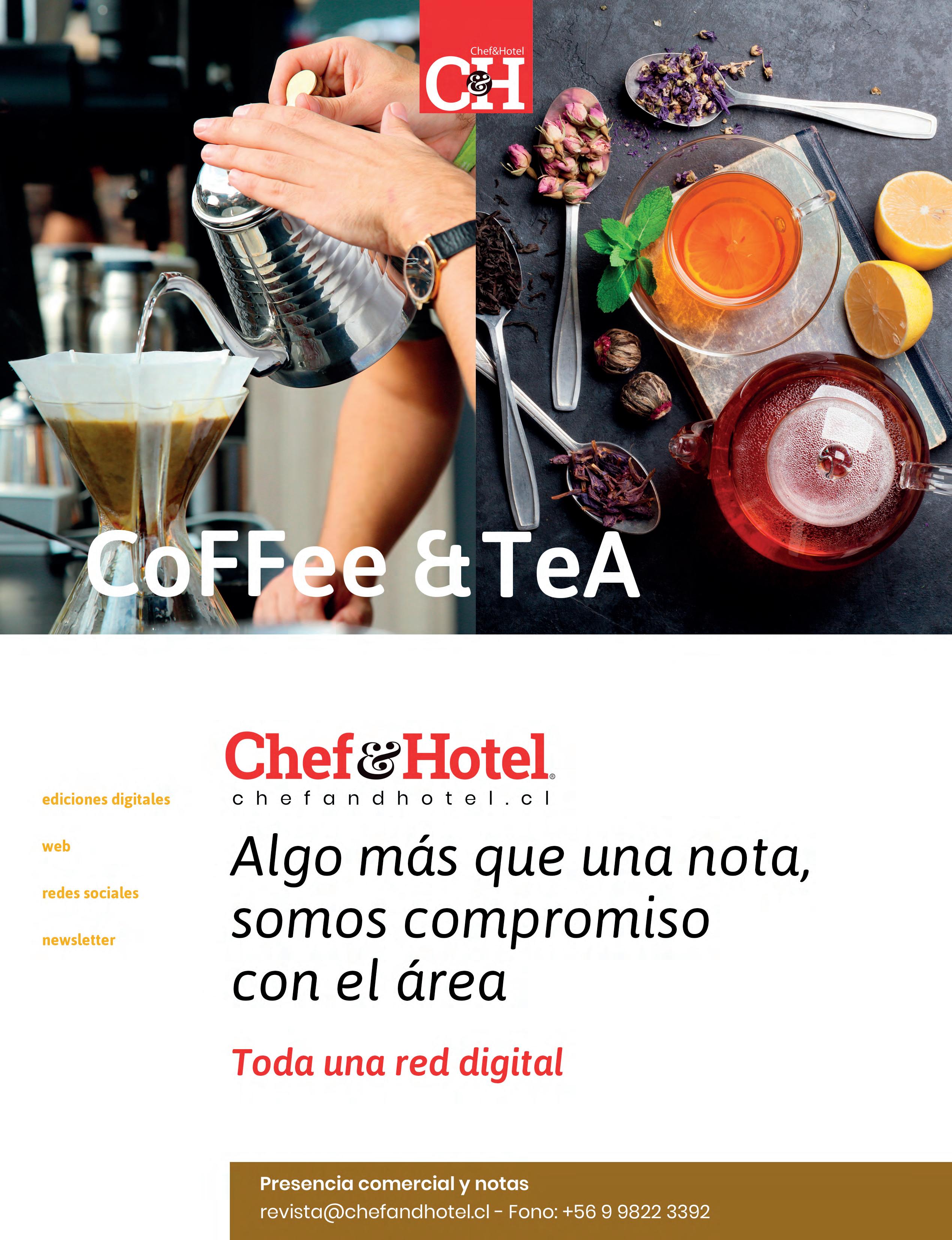 lectores a nivel nacional como también en Latinoamérica. Así fue como a poco andar se incluyó en sus reportajes al mundo de las cafeterías y teterías con sus profesionales, a lo que le siguió la pastelería, panadería, heladería y chocolatería artesanal. Segmentos comerciales que entra ban en una interesante expansión como de dinámica de innovación y creatividad. Finalmente, la mixología y coctelería de autor se unió a los temas que periódicamente exhiben las páginas de Chef&Hotel