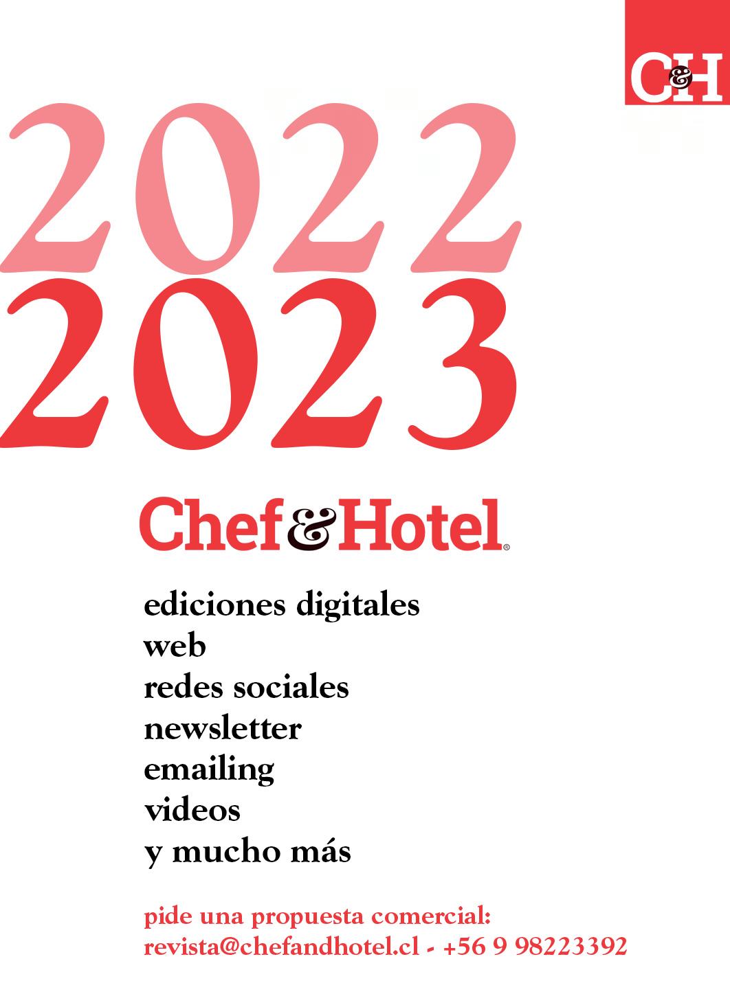 Revista Chef&Hotel publicación profesional independiente de hotelería, gastronomía y turísmo en versión digital con una entrega mensual a más de 9.000 personas relacionadas con el área. Difundida por web, redes sociales y newsletter directo a gerentes, chefs, dueños y administradores, etc., responsables de las decisiones de compra en hoteles y otros tipos de alojamientos, restaurantes, delivery, casinos, pastelerías, cafeterías, clínicas, operadores turísticos, agencias de turismo, empresas proveedoras, etc.