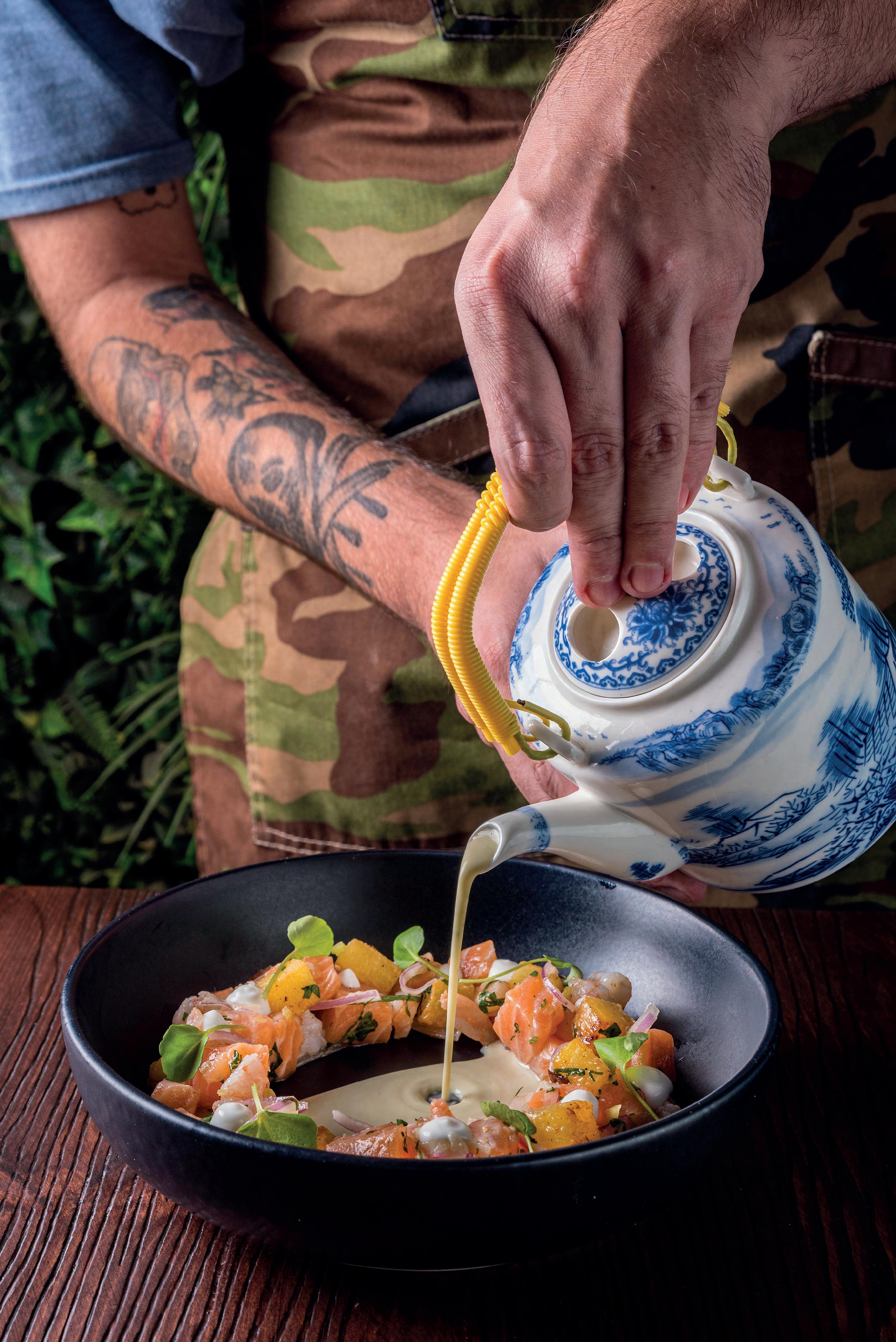 que satisface los más refinados paladares con sales sensitivas; Steffanie Rilling, de Efecto Manada, proyecto que procura colaborar en la regeneración de suelos y la ganadería regenerativa; y Maryanne Müller, con Fundación Origen y su labor pionera en un modelo educacional agroecológico que enseña de manera holística y cuenta con multiespacio para producir verduras, quesos y manjar natural, entre otros productos de tipo agroecológico. A su vez, Miquel Moya (Alimento Silvestre) fue convidado para hablar de su trabajo de recolección, investigación y acercamiento con plantas comestibles poco conocidas de nuestro territorio, en tanto el chef Nicolás Tapia (ver nota en edición Chef&Hotel 169) fue convocado a partir de su gestión con Yum Cha, restaurante con solo cinco mesas y menú pensado para disfrutar del té como protagonista acompañando la comida de manera armónica.