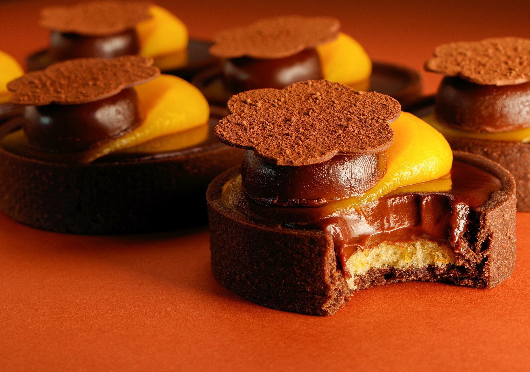 HIGOS, MURTA, ROSA MOSQUETA & GALLETA PORTEÑA SELVA FRESA | mini torta de temporada descubierta y con tres capas: sabor bizcocho esponja de chocolate 72%, compota de fresa namelaka, chocolate blanco y vainilla (terminada con un merengue de fresas a base de albúmina)