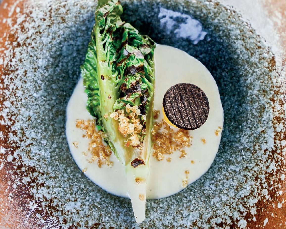 productores de vegetales orgánicos y comunidades de mujeres, como aquella que le entrega hongos shiitake cultiva dos con maderas del sur. “Me interesa potenciar pequeños emprendimientos para que todo este trabajo tenga una vuelta, que sea un círculo donde nos apoyamos entre pequeños empresarios, gente que viene recién partiendo y ha llegado a un buen producto y precio. Por eso, en nuestra carta la mayoría de los platos, salvo el pato que se escapa del promedio, tiene un precio que no va más allá de $8.500. Es un tema que quise instaurar: alta cocina a un valor asequible para cualquier persona”, destaca Sayil Guerra.