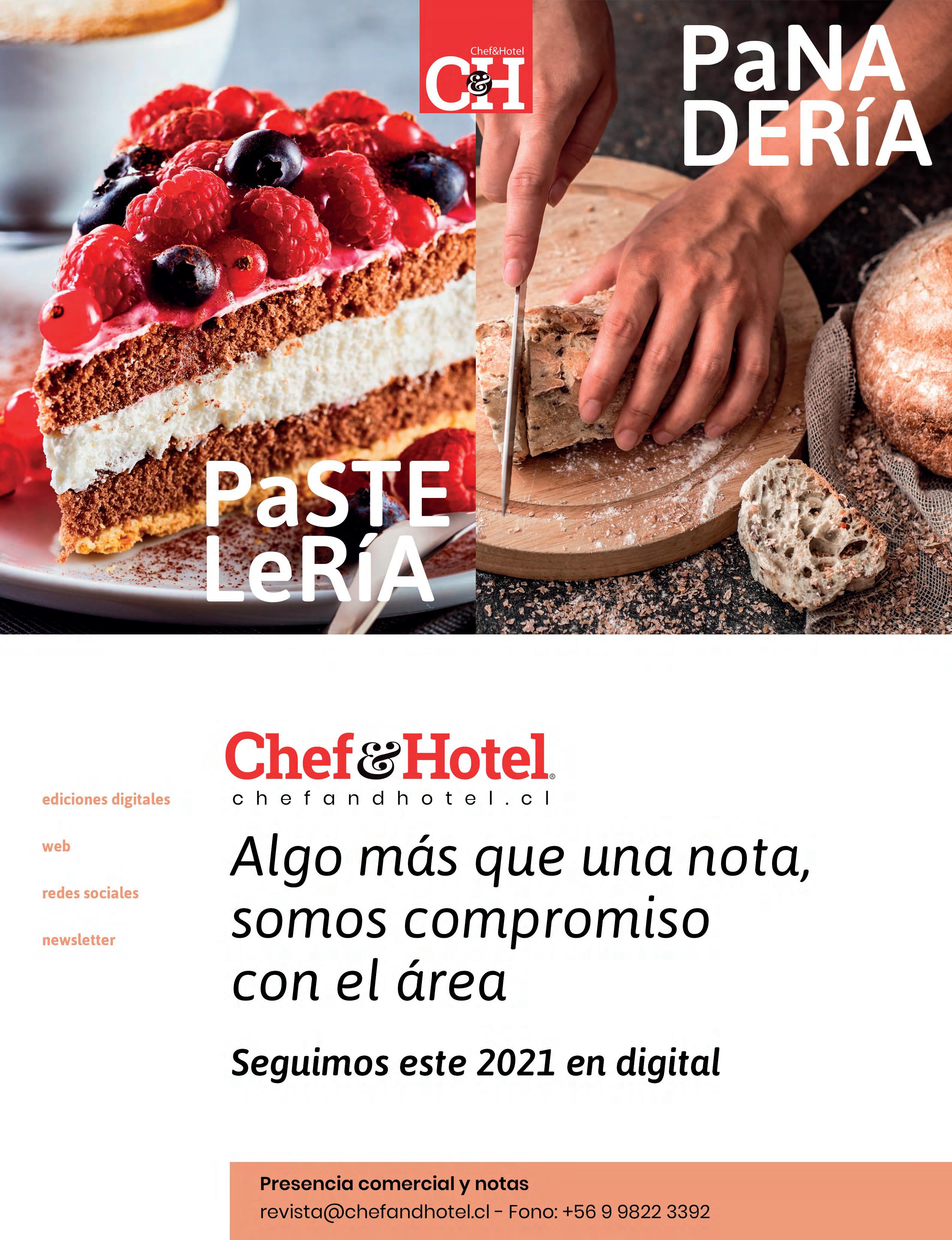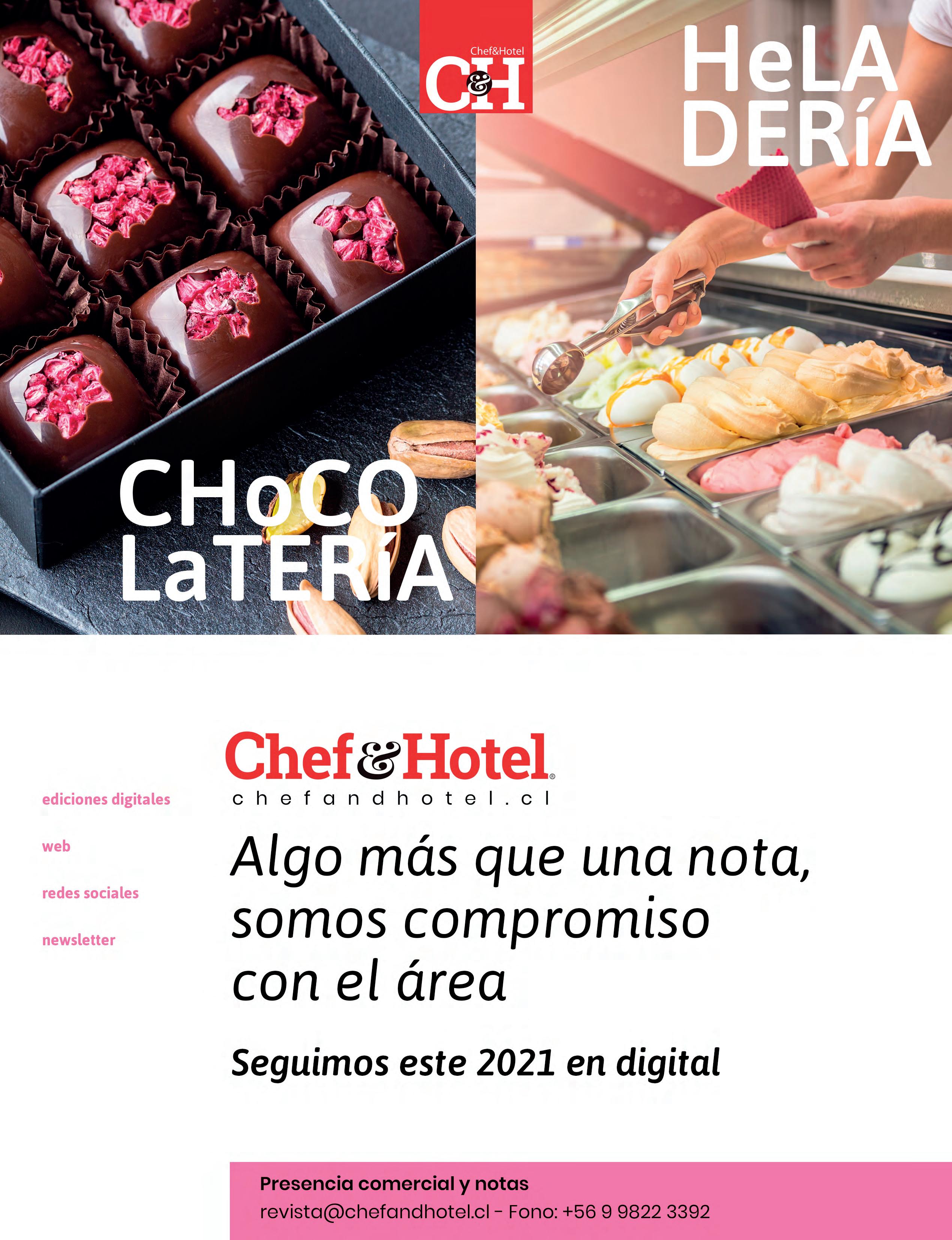 Revista Chef&Hotel es marca registrada de Hurtado y Cía. Ltda. la que no se hace responsable de los artículos firmados por clientes o columnistas, así como la información o publicidad que ellos entregan. Se prohibie la reproducción total o parcial de su contenido periodístico y fotográfico, sin la previa autorización de la empresa editora.