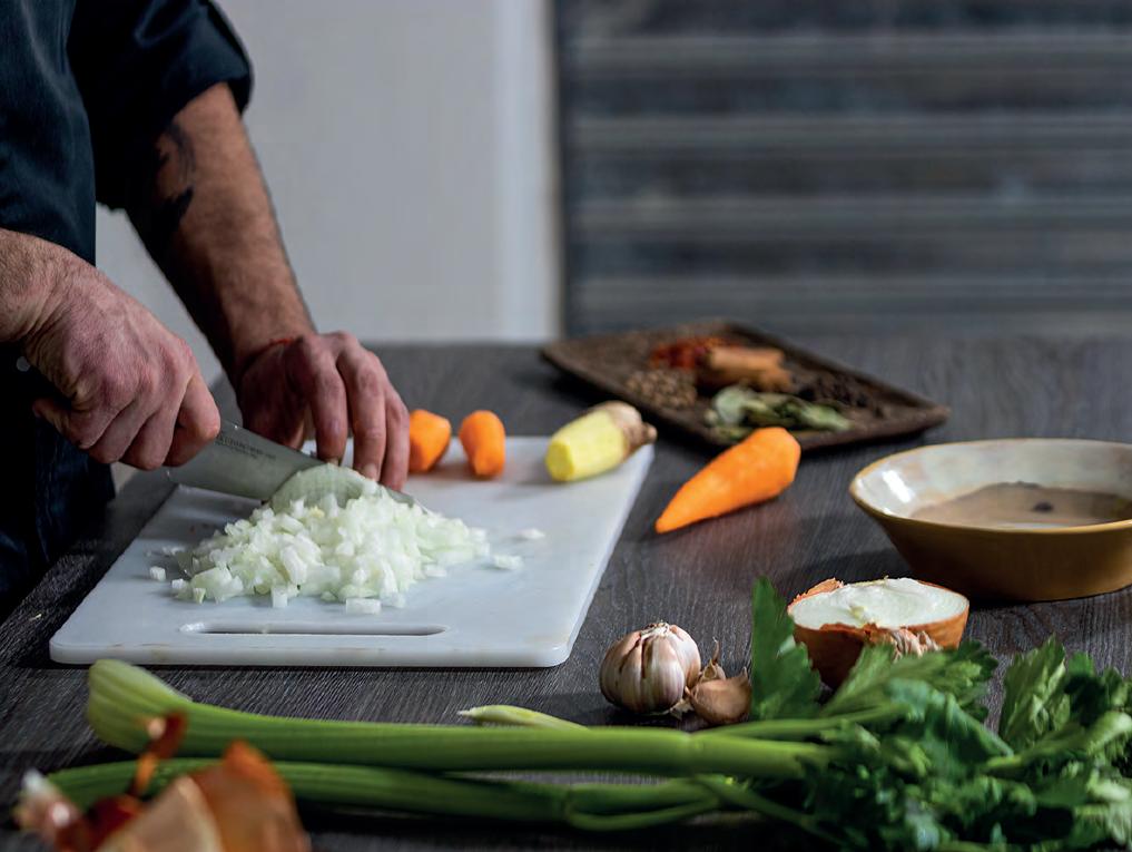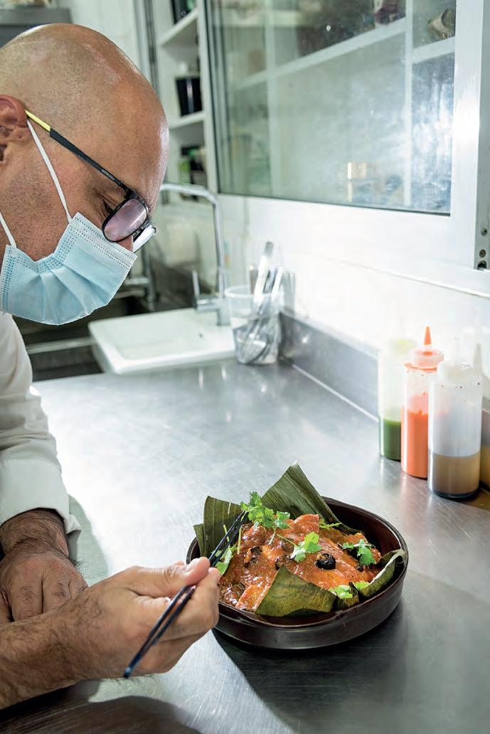 platos preparados para llevar o retirar – que ya había tenido algunos avances tímidos antes de la pande mia – se van consolidando interesan tes proyectos gastronómicos como los publicados en la presente edición y en las anteriores. Uno de estos es SumoGusto a cargo del reconocido chef venezolano Sumito Estévez y su esposa Sylvia, donde ofrece una cocina con sabores de su tierra natal; Diego Cocina de la mano del joven chef Diego Fernandino, cuya apuesta es poner en la mesa de sus clientes comida gourmet al vacío para una mejor experiencia culinaria. Por su parte está el trabajo artesanal en pastelería de Constanza Dittborn, que conquista con sabores caseros llevados directo a los hogares.