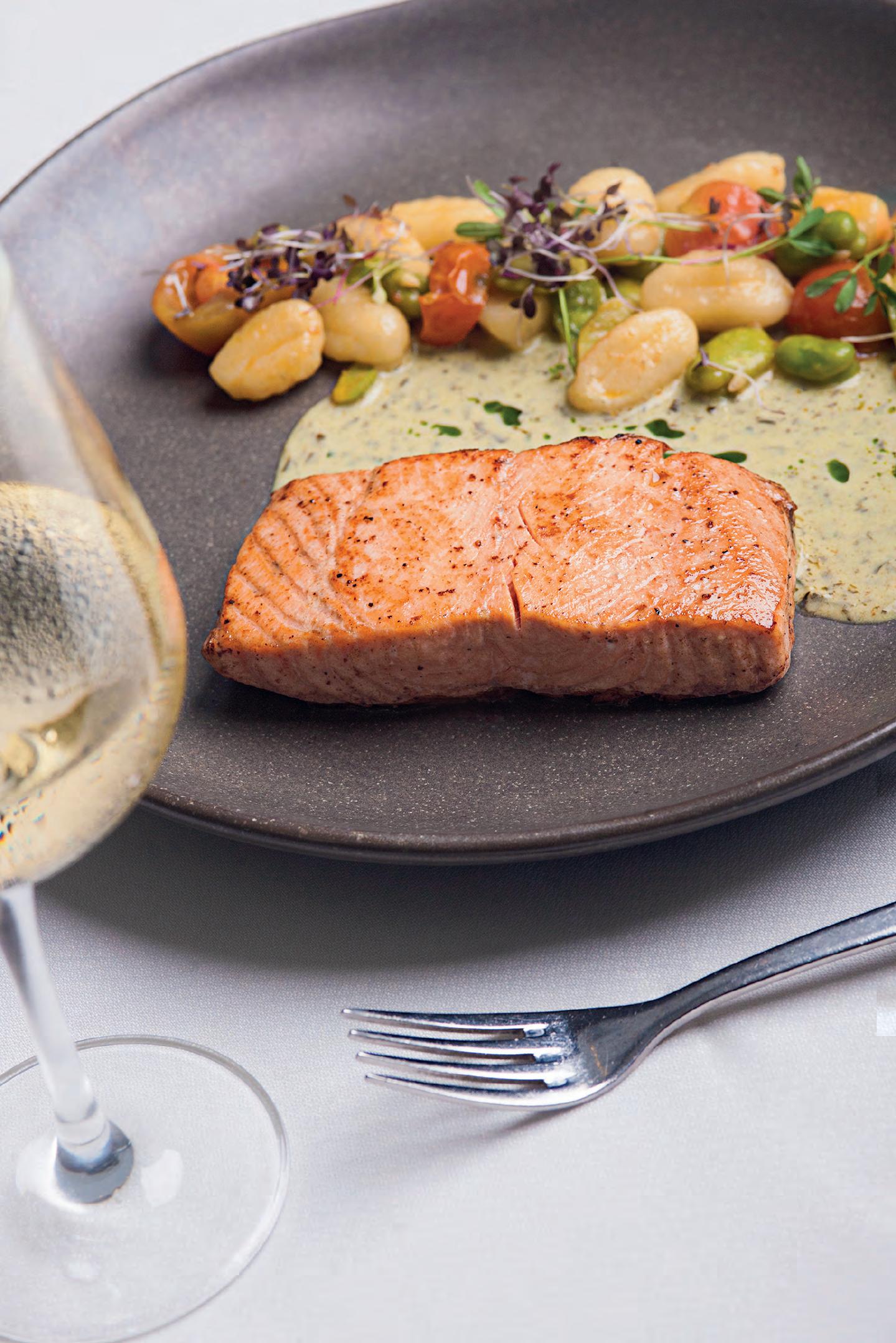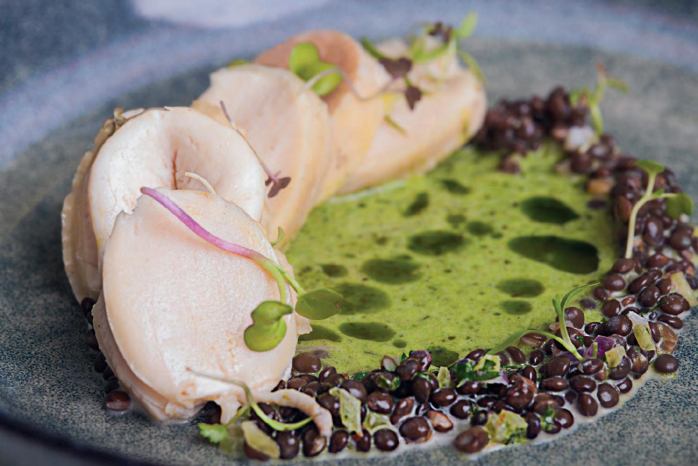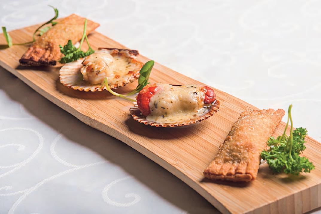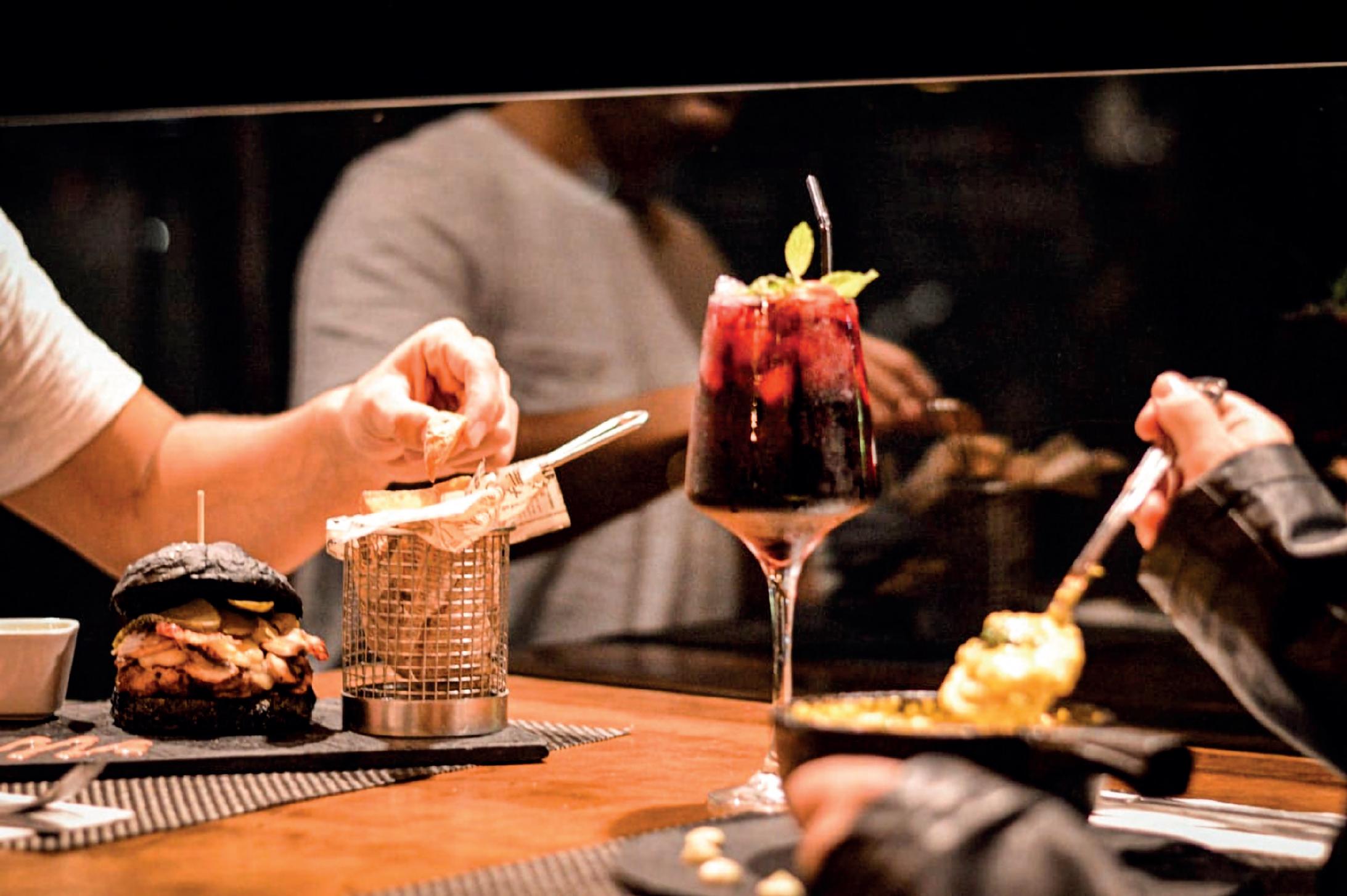 De la carta mencionó la Planchita de Mar, salmón a la plancha, papas al mortero, chicharrones de pescado del día, pinzas de jaibas de isla mocha, camarones ecuatorianos más una salsa a base de vino blanco y especias. Entraña a la Miel, carne preparada sobre una salsa de miel cocida y mostaza antigua; Entraña a la chilena. acompañada de pastelera de choclo con toques de albahaca. “Las hambur guesas de La Barra son 100% elabora ción propia. Desde nuestro pan característico que es negro, hasta los tres tipos de proteínas que puede escoger al momento de pedir la Burger:
