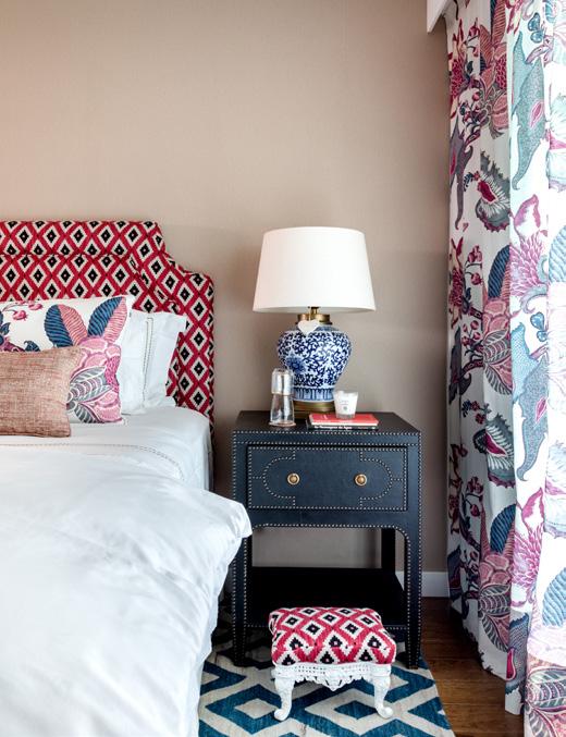 Detalhe dos móveis, combinados com muita estamparia, resultando em uma proposta de puro requinte Direita