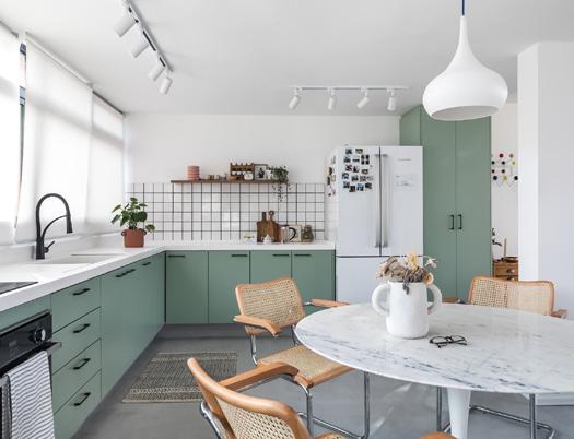 ntegração da cozinha para a sala de jantar contribui para receber os amigos com conforto. A linguagem estética, rica em peças do acervo pessoal, foi mantida em todos os ambientes