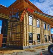 “The most important thing you can do to keep wood dry is get the building enclosed quickly,” said Edwards, explaining they used Home Depot gutters for the slab edges and solid pipe to help drain the building out. “A lot of our efforts were spent on passive protection that doesn’t require workers on site.”