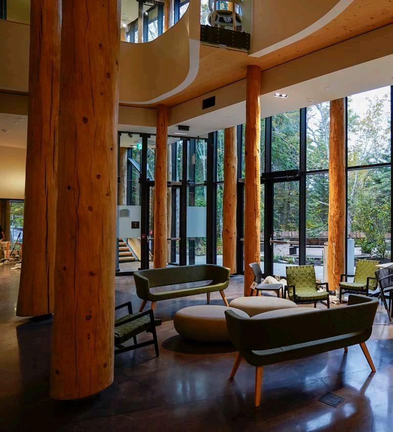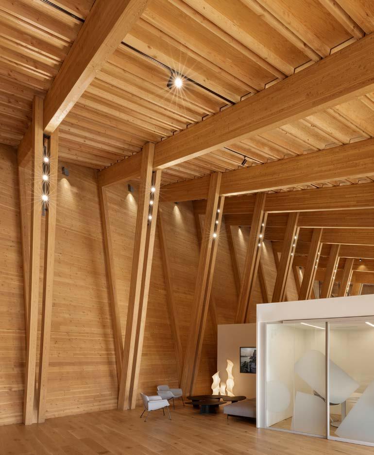 The meticulously detailed wood structure serves as the centre’s primary aesthetic, enhancing the building’s appeal and promoting a sense of wellbeing of occupants.