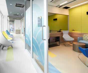 The hospital includes major resiliencefocused strategies, such as floodgates at lowlying entrances and stormwater reuse for cooling system water circulation. It is also designed to a post-disaster standard with ample back-up power capacity to support clinical services without interruption during an emergency event. But perhaps the true success story lies in how climate resilience was embedded in the design of all major building systems, including upsizing cooling and ventilation systems for future weather files, increasing air filter capacity for wildfire smoke and prioritizing climate-adapted landscape species. This deep integration of resilience into the design process meant smaller, incremental design enhancements that will, hopefully, help avoid costly system damage or failure from future climate disasters.