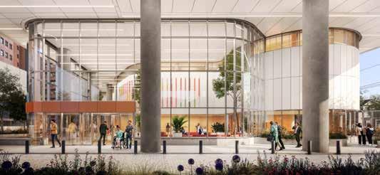 Designed to destigmatize mental health, MHAC includes a 240,000-square-foot, sixstory, 102-bed hospital that features therapeutic terraces and daylight-filled rooms to foster comfort and community for clients, families and caregivers; a new 60-bed hostel (replacing Agnes Cowan Hostel that was demolished in 2019); and a parking garage with space for 1,000 vehicles.