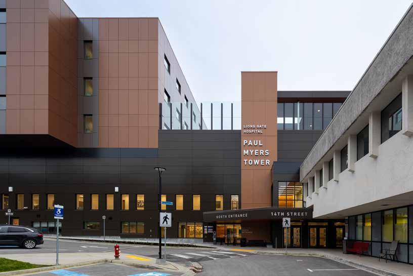 THROUGHOUT ANY GIVEN YEAR, a multitude of healthcare facilities break ground or are completed. Then there are those that are recognized with awards. The Paul Myers Tower at Lions Gate Hospital in North Vancouver is just one project honoured in 2025. Part of the hospital’s phased redevelopment, the sixstorey tower garnered PCL Constructors Westcoast a gold award in the general contractor category, presented by the Vancouver Regional Construction Association. You can read about the project that brought modern clinical spaces and improved patient experience to one of the region’s busiest hospitals in Complex Achievement