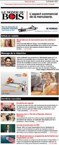 IS WHAT ROBOTIC AUTOMATION GIVES YOU – A VERY STRONG TOOL TO ACHIEVE YOUR GROWTH OBJECTIVE, QUICKLY.” – TOMMY GAGNON, CEO, AUTOMATECH ROBOTIK COLUMN SUBSCRIBE for Free KEEP YOUR FINGER ON THE PULSE OF THE CANADIAN MARKET WITH Canadian industry news, feature articles, product profiles, design and technology updates delivered to your inbox every week. WEEKLY E-DIGEST www.woodindustry.ca www.lemondedubois.com