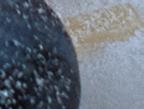 Add a sieve of mango popping boba to a cup full of ice.