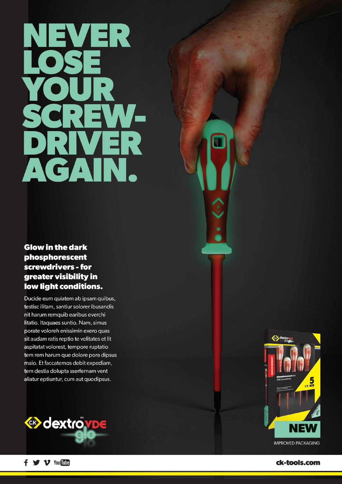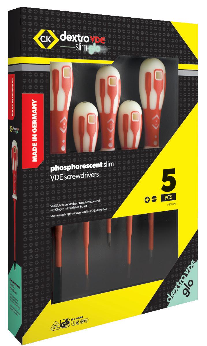 To re-fresh a range of packaging including the C.K Dextro VDE Slim Glo Screwdriver set. The design should stand out on fixture, with clear messages to engage the end user. Packaging is to be translated into French, German and Spanish.
