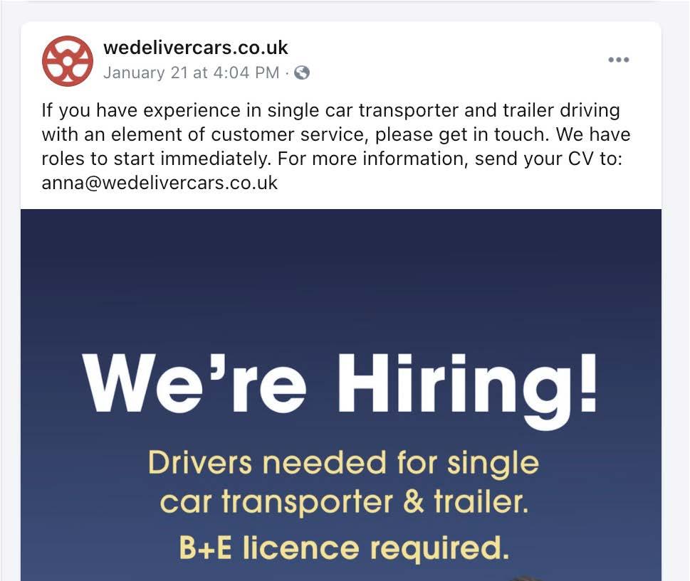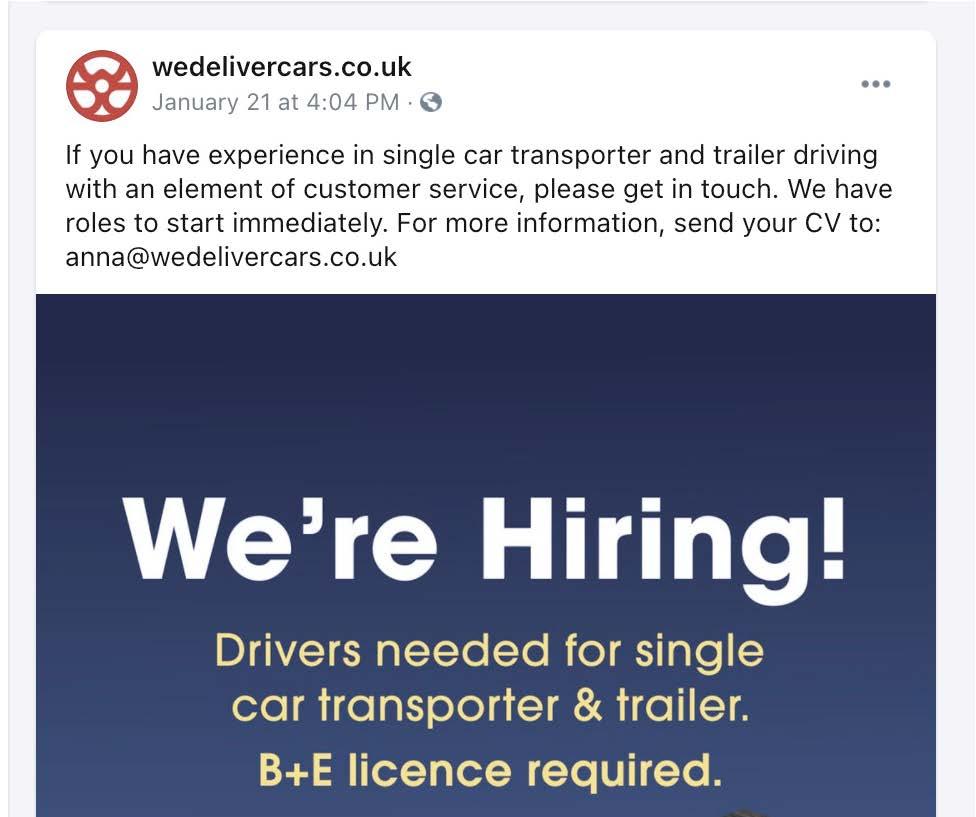 wedelivercars.co.uk Social brand engagement campaign 2021. Creative and content.