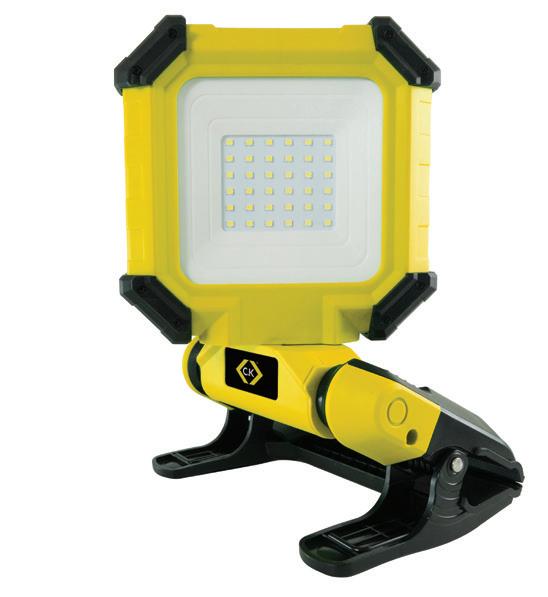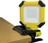 WIGIG High power rechargeable LED flood light featuring a strong clamp system and 360° swivel head. Supplied with Mains charger. 1 2 3 4