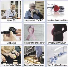 Free flu jabs are available to anyone over 50. Over 65s, pregnant wom en, people with certain health conditions or who work in some frontline jobs, can book now. You simply call your GP or book at a pharmacy. For covid jabs, first, second and booster vaccines are available at local clinics. At the time of writing this, autumn boosters are available to over 65s, pregnant women and anyone over 5 with an underlying health condition. Book with your GP or find a local walk-in clinic at bnssghealthiertogether. org.uk/covid