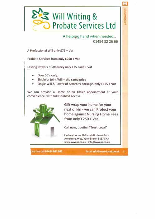 PUBLISHER’S NOTE: Yate & Sodbury Voice is independent. We cannot take responsibility for content or accuracy of adverts, and it is advertisers’ responsibility to conform to all relevant legislation. We cannot vouch for any services offered. Opinions are not necessarily those of the editor. Yate & Sodbury Voice is distributed each month to local residents. If for some reason you do not get a copy, please get in touch or collect one from local pick-up points. Feedback is welcomed, contact@yateandsodburyvoice.co.uk
