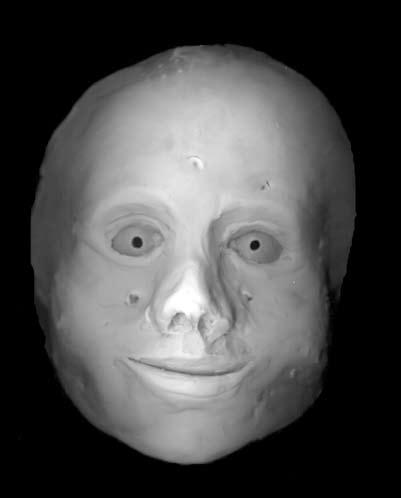 Facial reconstruction is another useful method of indicating possible identity. The basic process is illustrated in the following figures and the workup must be considered subjective. There has been extensive work to establish the normal soft tissue thickness at various