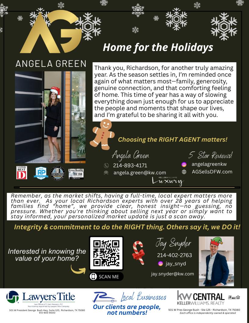 As realtors, we get to see how community comes to life here. Families put down roots, neighbors become friends, and milestones big and small are celebrated along the way. There’s something so special about watching Richardson shine a little brighter this time of year!