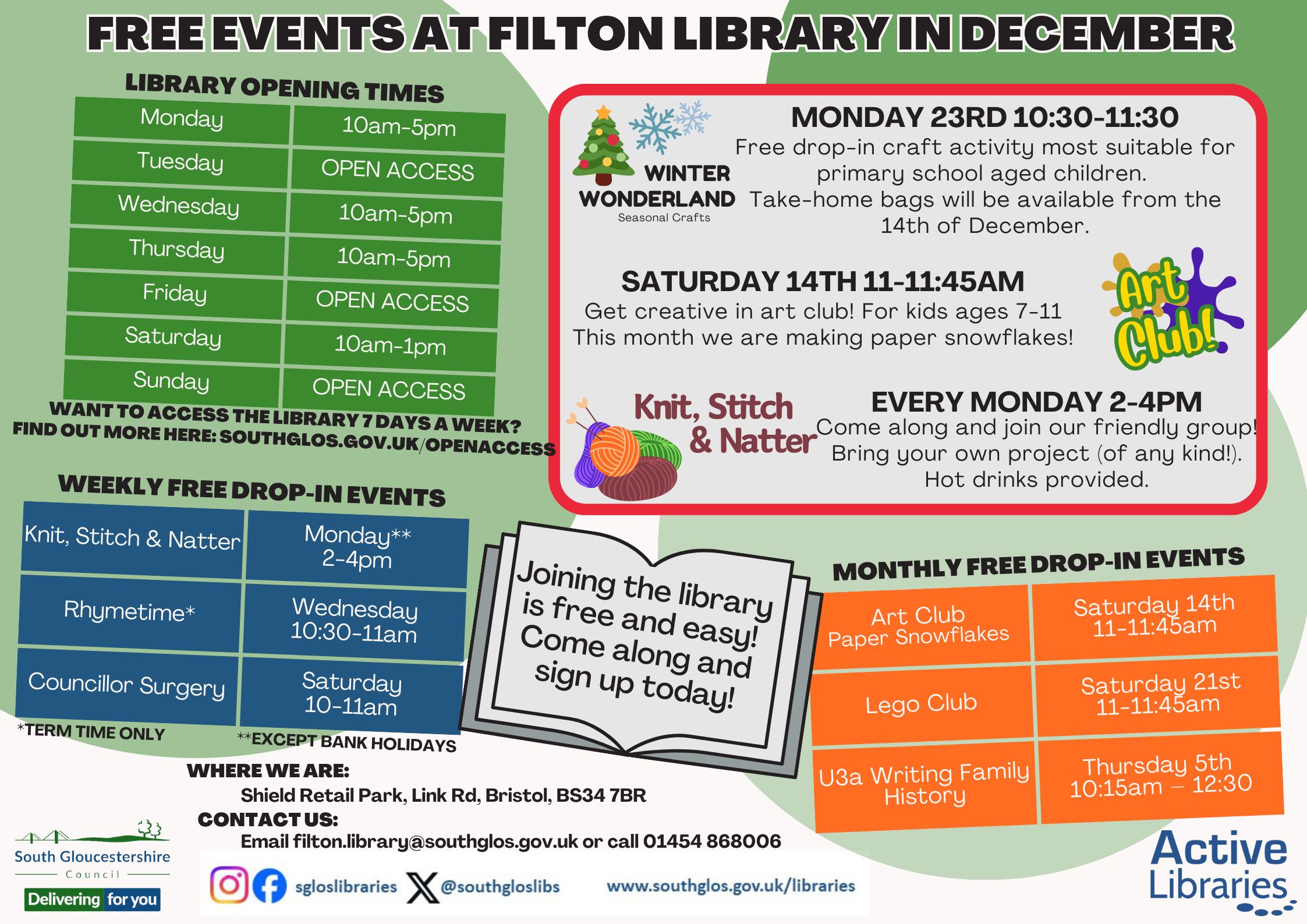Come along to the Bookworms monthly reading group at Filton Library! 1st Friday of each month at 2pm. If you are interested in Joining, please as inside the library. Phone: 01454 868006 or Email: Filton.library@southglos.gov.uk
